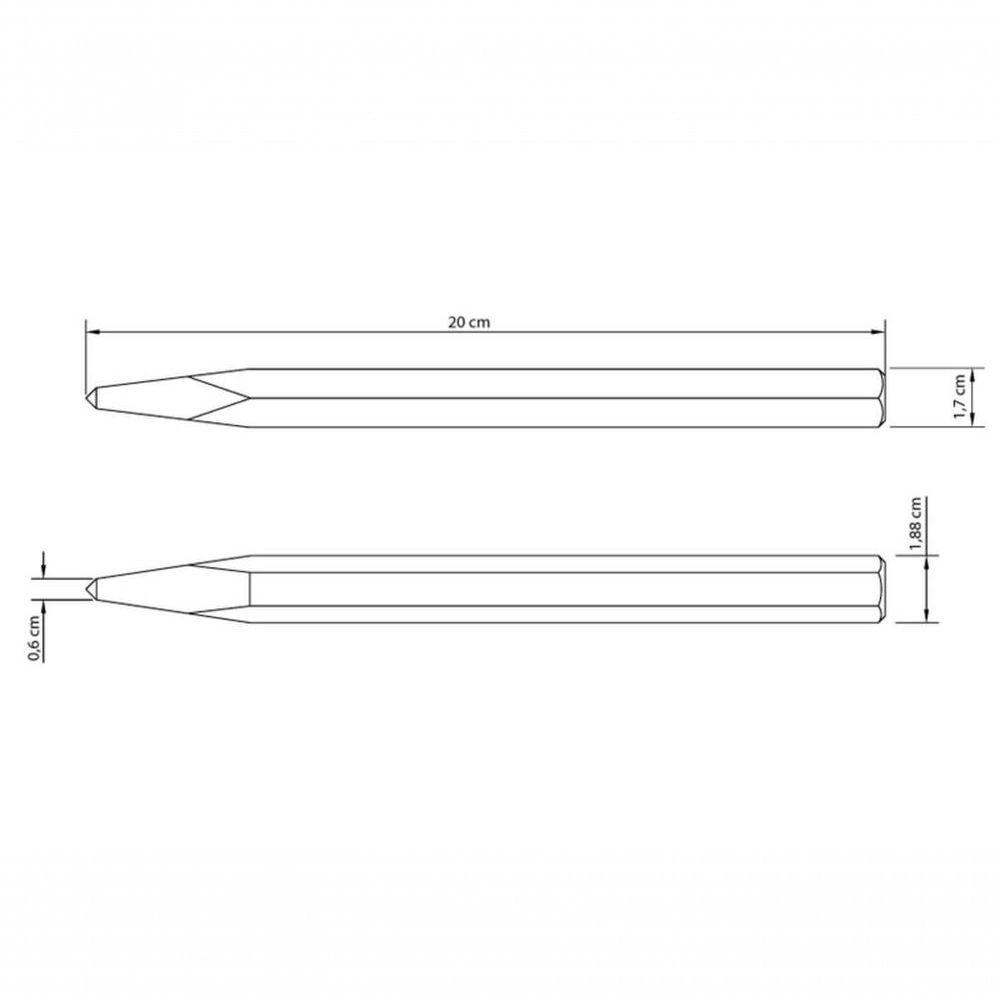 Ponteiro Sextavado Tramontina Master 8"O Ponteiro Sextavado 8 Polegadas Tramontina Master é a ferramenta ideal para quem atua na construção civil ou realiza pequenos reparos. Produzido em aço especial com barra sextavada, é altamente resistente e durável, sendo perfeito para perfurações em pedras, concreto e tijolos. Com ele, você garante mais eficiência, e praticidade na execução das suas tarefas!Recomendações de Uso:Modo de uso: Use óculos, luvas e outros equipamentos de proteção de acordo com a tarefa a ser executada. Utilize talhadeiras e ponteiros em superfícies ou componentes de dureza inferior a suas arestas de corte ou pontas. Descarte qualquer talhadeira ou ponteiro que apresente rachaduras, sinais de uso excessivo ou que tenham a face de impacto deformada. Golpeie as talhadeiras e ponteiros perpendicularmente às faces de impacto. Armazene em limpo e seco.- Foto meramente ilustrativa.Informações Adicionais:- Barra sextavada;- Corpo em aço especial;- Têmpera por indução nas duas extremidades;- A pintura eletrostática garante proteção excelente contra a corrosão;- As ferramentas são submetidas a testes de aplicação prática para garantir sua resistência mecânica em uso intenso;- Estas ferramentas de impacto tem dureza diferenciada no gume de corte ou ponta e na face de impacto que será golpeada.