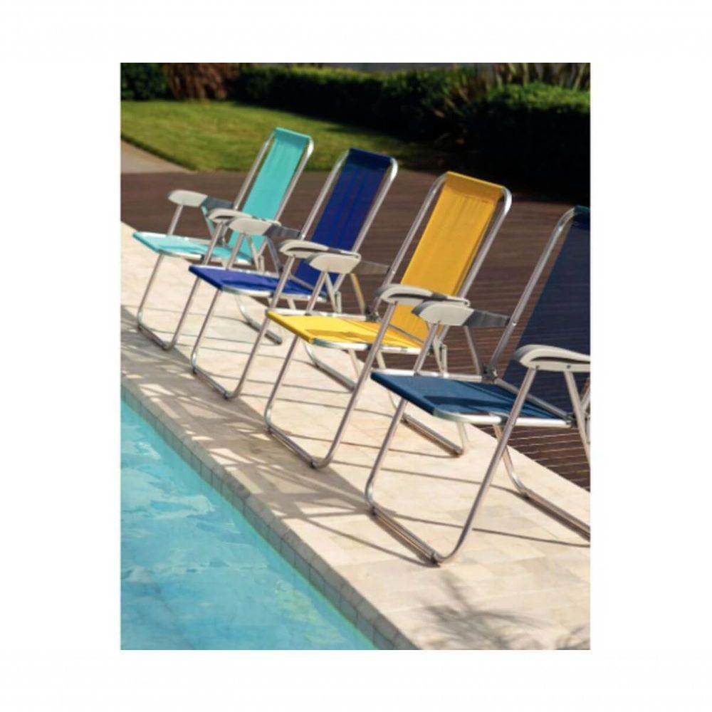 Cadeira De Praia Tramontina Creta Master Em Alumínio Com Assento AzulGaranta momentos deliciosos à beira da praia, piscina ou acampamento, com a cadeira de praia Tramontina Creta Master em alumínio com assento azul. Inspirado na ilha de Creta, seu design é moderno e exclusivo, com uma cor vibrante e detalhes cinzas que entregam um acabamento excelente e uniformidade visual. Sua estrutura é em alumínio com tela em poliéster com proteção ANTI-UV, o que garante capacidade para até 110 quilos. Uma cadeira para quem não abre mão do conforto nas horas de lazer!Recomendações de Uso:Modo de Uso: Higienizar com sabão neutro e esponja macia, evitar produtos abrasivos. ;Prestar atenção especial à remoção de quaisquer vestígios de areia ou sal. ;Assegurar que o produto ficou completamente seco depois de lavá-lo. A umidade prolongada pode provocar a aparição de mofo. ;Para prolongar a vida útil do produto manter guardado quando não estiver em uso. ;Longas exposições ao sol podem provocar manchas ou perda da cor do produto. ;Retirar o produto do ambiente sempre que for higienizar o piso, ;alguns materiais de limpeza podem causar danos em com a peça.Informações Adicionais:- Não ficar em pé sobre o assento;- Transportar sempre com cuidado;- Peso Máximo Recomendável: 110 kg;- Modelo: Dobrável com antiderrapante;- Fabricação: Apoios em polipropileno injetado, tubo em alumínio natural e tela em polietileno com proteção ANTI-UV.- Foto meramente ilustrativa. ;