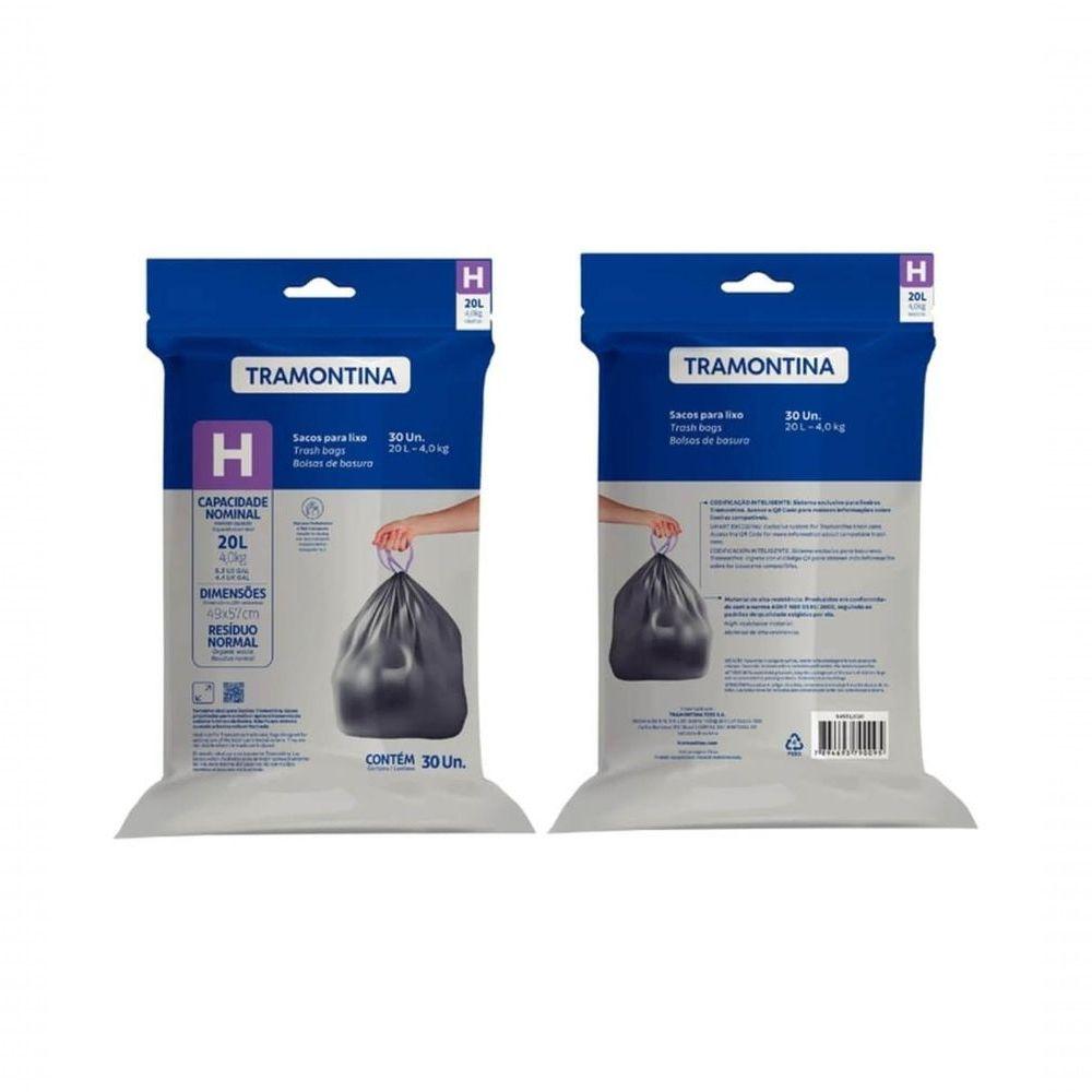 Saco Plástico De Lixo 20 L (h) Para Lixeiras TramontinaDesenvolvido especialmente para as lixeiras Tramontina, o Saco Plástico de Lixo 20 L para Lixeiras Tramontina é a solução perfeita para manter o seu ambiente livre de resíduos e com uma aparência impecável. Sua produção é feita com materiais de alta qualidade, garantindo a sua resistência contra rasgos. O saco plástico de lixo Tramontina possui alças especiais que permitem um fácil e descarte do lixo, proporcionando maior praticidade e comodidade para o seu dia a dia. Além de todas essas características, ele é versátil e pode ser utilizado em diversos ambientes, como banheiros, cozinhas e escritórios. 100% reciclavél, é um produto que contribui para a sustentabilidade do planeta e do meio ambiente!Recomendações de Uso:Modo de Uso: Para evitar o perigo de asfixia, manter a embalagem e o saco de lixo fora do alcance de crianças. Os sacos não são recomendados para conteúdos perfurantes. Uso exclusivo para lixo.- Foto meramente ilustrativa.Informações Adicionais:- Embalagem com 30 unidades;- Capacidade: 20 litros / 4kg. Letra (H);- Possui alça para fechamento e ;- Sistema exclusivo para lixeiras Tramontina;- Material: plástico 100% reciclável e de alta resistência, conforme norma ABNT NBR 9191: 2008;- Embalagem com letra indicativa de tamanho de saco lixo, consulte o folheto na página do produto e veja quais lixeiras são compatíveis.
