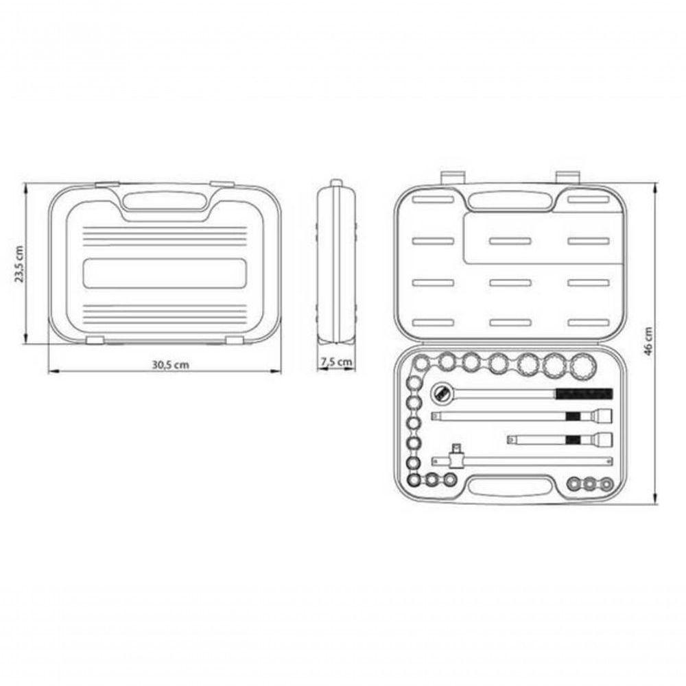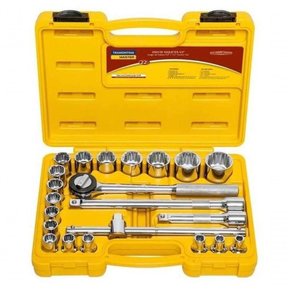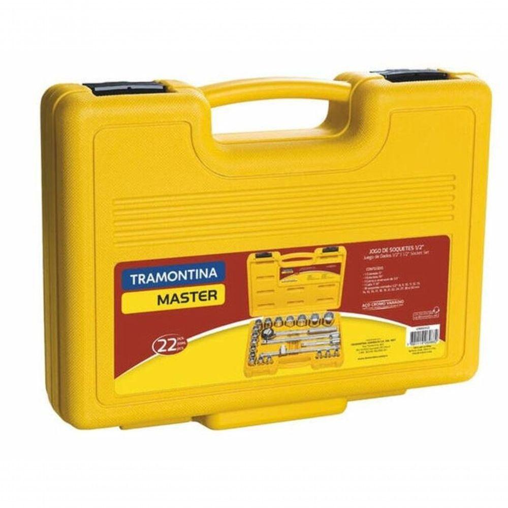 Jogo De Soquetes Estriados Encaixe 1-2" Tramontina Master Aço Cromo Vanádio E Maleta 22 Peças