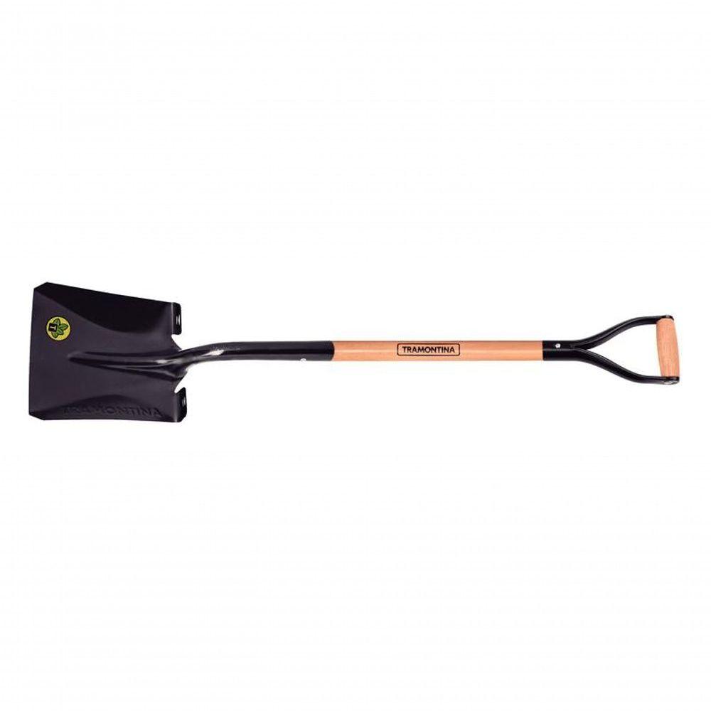 Pá Quadrada Tramontina Em Aço Com Cabo De Madeira 74cmA pá quadrada Tramontina 417/20 em aço com cabo de madeira 74 cm e empunhadura metálica ergonômica é ideal para trabalhos na agricultura, jardinagem e construção civil. Produzida em aço carbono temperado e cortada a laser, oferece alta resistência e durabilidade. Seu acabamento com pintura eletrostática a pó protege contra oxidação, prolongando a vida útil da peça. O cabo de 74 centímetros em madeira envernizada, aliado à empunhadura metálica com design ergonômico, proporciona um manuseio mais firme e confortável, facilitando o trabalho.Recomendações de Uso:Modo de uso: Utilizada na agricultura, jardinagem e construção civil, para juntar ou carregar materiais diversos (como areia, cascalho e terra) em superfícies planas. Para descarte dos produtos e embalagens siga as orientações de reciclagem vigentes.- Foto meramente ilustrativa.Informações Adicionais:- Possui empunhadura metálica ergonômica;- A pá é fabricada em aço carbono especial de alta qualidade, cortada a laser;- É temperada em todo o corpo da peça, proporcionando maior resistência e menor desgaste durante o uso;- Recebe pintura eletrostática a pó, que tem uma melhor apresentação visual e maior proteção contra oxidação;- A tinta utilizada na pintura é isenta de metais pesados na sua composição, o que minimiza o impacto ambiental;- O cabo de 74 cm desta ferramenta, além de possuir ótima resistência, é produzido com madeira de origem renovável;- Cabo com acabamento envernizado, para um melhor acabamento e apresentação do produto. A camada protetora em verniz incolor realça sua tonalidade, concedendo brilho e um toque mais liso ao produto.