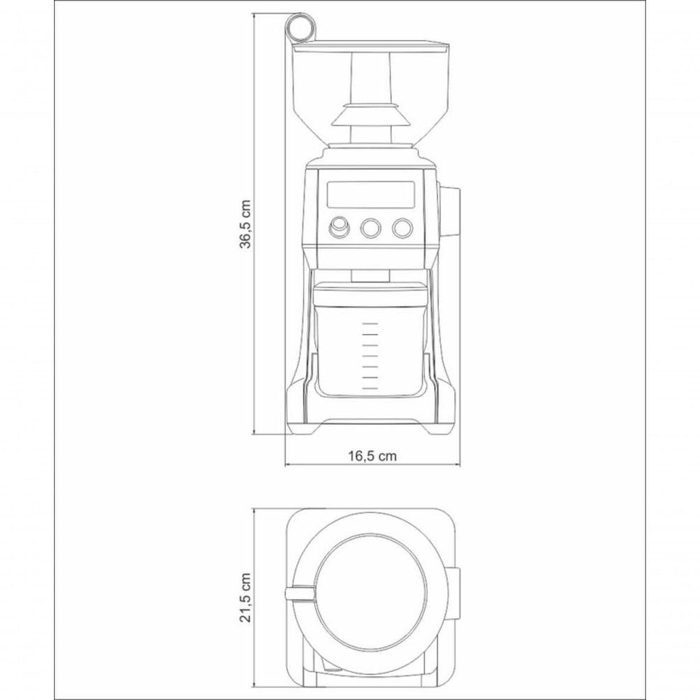 Moedor De Café Tramontina By Breville Express 60 Níveis De Moagem 220 VA moagem ideal faz toda a diferença no sabor do café, e com o Moedor de Café Express em Aço Inox 60 Níveis de Moagem 220 V da linha de Eletroportáteis Tramontina by Breville, você tem controle total sobre esse processo. Com até 60 ajustes de moagem, que vão do pó ultrafino para espresso até o mais grosso para prensa francesa, ele permite explorar diferentes intensidades e métodos de preparo. Conta com funil para grãos com capacidade de 450 g e tela LCD com retroiluminação que exibe, de forma clara, o de doses, tipo de moagem selecionado e o tempo atual de moagem. Traz ainda ajuste manual e programável de dosagem, além de limitador que fornece sempre a quantidade exata de café, com moagem automática e sem o uso das mãos. O corpo em aço inox escovado garante durabilidade e elegância, enquanto a bandeja removível para resíduos facilita a limpeza. Equipado com brocas cônicas, preserva melhor o aroma e o sabor dos grãos.Transforme o preparo do seu café em um verdadeiro ritual com precisão, praticidade e qualidade.Recomendações de Uso:Antes de usar: ;Leia cuidadosamente todas as instruções do manual e guarde-o para consultas futuras. Antes de usar o Moedor Express pela primeira vez, remova e descarte com todos os materiais da embalagem e etiquetas promocionais.Modo de uso: Não coloque o Moedor Express da Tramontina perto das bordas do balcão ou da mesa durante a sua utilização. Para evitar choques elétricos, não mergulhe a base do moedor, o cabo e o plugue de alimentação em água, nem permita que essas peças entrem em com umidade. Não use outros acessórios além daqueles fornecidos com o Moedor Express. Não use o Moedor Express sem travar a tampa do funil para grãos na posição correta. Mantenha os dedos, as mãos, os cabelos, as roupas e utensílios longe do funil para grãos durante o funcionamento. O moedor de café só deve ser ligado após o funil para grãos e a tampa do funil estarem travados na posição correta na câmara de moagem. Não use o aparelho continuamente por mais de 2 minutos, pois isso pode causar superaquecimento. Deixe-o esfriar por 20 minutos após funcionar por períodos longos. Não use o aparelho para nenhuma outra finalidade além de moer grãos de café. Não use café pré-moído no funil para grãos. O aparelho não mói alimentos úmidos ou extremamente duros, nem produz pastas de frutas, sementes ou ervas, como curry ou creme de amendoim. Este aparelho não deve ser por crianças. Mantenha o aparelho e o cabo fora do seu alcance.- Foto meramente ilustrativa.Informações Adicionais:- Potência: 165W;- Frequência: 60 Hz;- Moedor com brocas cônicas;- Corpo em aço inox escovado;- Moagem sem o uso das mãos;- Funil de 450 gramas para grãos;- Ajuste manual e programável de dosagem;- Este aparelho é recomendado apenas ao uso doméstico;- Bandeja removível para pó de café, para uma limpeza rápida e fácil;- Limitador de dosagem, o dosador fornece sempre a quantidade precisa;- 60 Configurações de moagem, do mais fino para expresso ao mais grosso para prensa;- Tela em LCD com retroiluminação exibe o de doses ou xícaras, a configuração do tipo de moagem e o tempo atual de moagem.