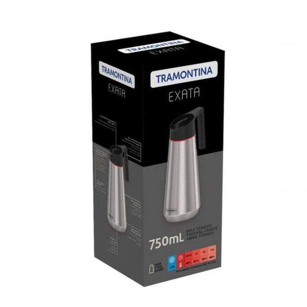 Bule Térmico Tramontina Exata Em Aço Inox 750 MlCom o Bule Térmico Tramontina Exata em Aço Inox 750 ml você terá uma peça charmosa e elegante para seu café, chá ou água. Ele pode ser utilizado para manter líquidos quentes ou frios na temperatura adequada por muito mais tempo. Seu design moderno e clean pode ser combinado com qualquer estilo de cozinha, deixando-a muito mais bonita. Ele é desenvolvido em aço inox com acabamento texturizado fingertip free, o que garante alta resistência, durabilidade e impede marcas de utilização. Com sistema corta-pingos embutido e cabo confortável, ele ainda é mais leve e de manusear. Os bules em inox podem ser utilizados para uso doméstico ou comercial. A escolha ideal!Recomendações de Uso:Modo de Uso: Antes do primeiro uso, remova e descarte todos os materiais de embalagem, adesivos e lave o produto; Para evitar vazamentos, certifique-se de que a rolha de vedação está bem encaixada no bocal; Não coloque o produto em fornos elétricos, micro-ondas, freezers, geladeira, máquina de lavar louças; A capacidade volumétrica poderá ter uma variação de até 10% em seu volume nominal indicado. DICAS: recomendamos pré-aquecer/pré-refrigerar seu bule térmico antes de usar. Utilize a capacidade total do bule para uma melhor conservação térmica. Cuidados especiais: Não agite o bule; Não deixe o bule cair ou bater; Não coloque no bule: gelo seco, refrigerantes (ou bebidas gaseificadas) ou líquidos que possam gerar alta pressão; Não coloque bebida quente e em seguida a bebida gelada, ou vice-versa; Por ser uma garrafa de mesa, recomenda-se que o deste produto seja sempre feito na posição vertical; Após o uso ou limpeza, aconselhamos deixar o bule aberto. Orientações para limpeza: Não use produtos abrasivos, pois eles podem riscar o aço inoxidável; Lave somente com detergente neutro e esponja macia; Se houver odores desagradáveis ou manchas no interior do bule, pode-se usar uma solução com a medida de 2 colheres (sopa) de bicarbonato de sódio e água quente (até sua capacidade máxima), e deixe agir por 12 horas; após, faça a limpeza diária.- Foto meramente ilustrativa. ;Informações Adicionais:- Recomendado para servir;- Sistema corta-pingos embutido;- Seus componentes são BPA free;- Corpo externo e ampola de aço inox;- Uso intuitivo com abertura estilo "rolha";- Cabo confortável com toque suave e muito ;- Praticidade no uso e para toda a família;- Acabamento texturizado fingertip free, evitando marcas;- que direciona o fluxo da bebida, evitando respingos;- Não é indicado para a preparação do café diretamente no bule;- Robusto, simples e moderno, ocupa menos espaço na sua casa e durante o ;- Ideal para manter líquidos quentes ou frios na temperatura adequada por muito mais tempo.