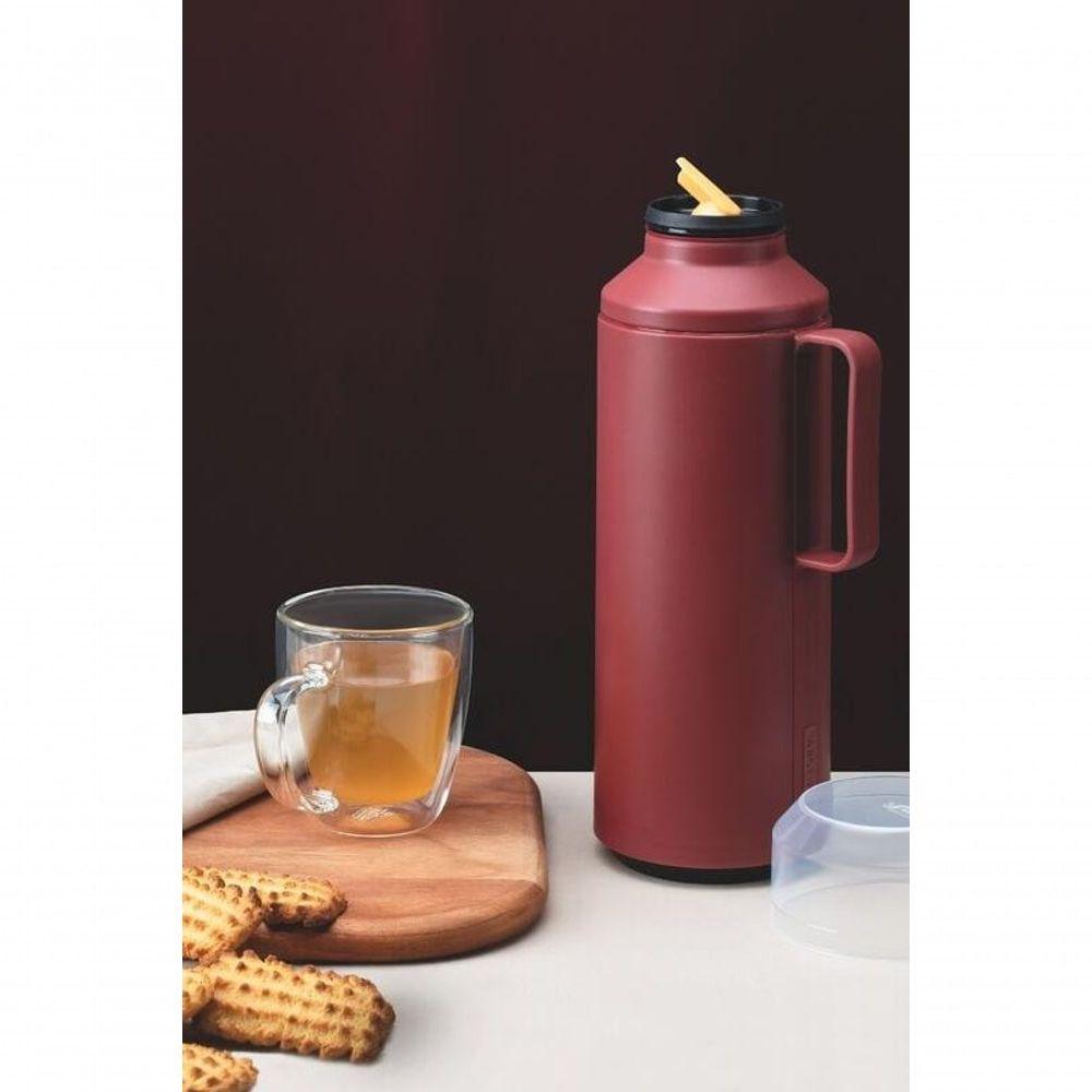 Garrafa Térmica Tramontina Exata Vermelha Com Ampola De Vidro 1 Litro