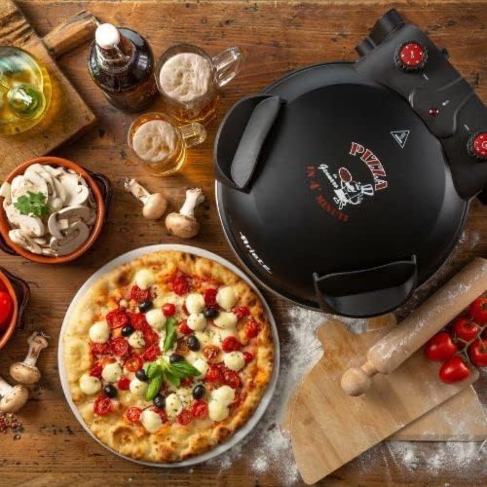 Forno De Pizza Elétrico Ariete Preto 1200W 220VForno de Pizza Elétrico Ariete Preto 1200W 220V – Crocância Rápida com EstiloTransforme seu lar em uma pizzaria com o Forno de Pizza Elétrico Ariete preto, com potência de 1200?W e alta temperatura para preparar pizzas crocantes em poucos minutos. Compacto e com design elegante, é ideal para quem busca praticidade sem abrir mão do sabor autêntico.Principais Características:Crocância em 4 Minutos: Atinge 400?°C rapidamente para assar pizzas caseiras em 4 minutos ou pizzas congeladas em apenas 2 minutos Pedra Refratária Antiaderente de 32?cm: Garante distribuição uniforme de calor e facilita a limpeza, mantendo a superfície livre de resíduos 5 Níveis de Temperatura: Ideal para diferentes preparos – massas frescas, congeladas, tortas, pães e snacks .Timer com 30 Minutos + Alarme: Permite programar o preparo e avisar quando estiver pronto, evitando que a pizza queime Acessórios Inclusos: Vem com duas pás de madeira para facilitar o manuseio da pizza quente Por Que Escolher o Forno Ariete Preto?Resultados Profissionais em Casa: Alta temperatura e distribuição de calor simulam um forno a lenha, conferindo à pizza crocância e textura de pizzaria .Versatilidade na Cozinha: Mais que pizzas – prepara croissants, tortas salgadas e snacks sem ressecar Design Compacto e Sofisticado: Corpo em preto e acabamento moderno se ajustam facilmente a qualquer bancada, ocupando pouco espaço.Limpeza Simples: A pedra antiaderente e a base nivelada facilitam a higienização após o uso .Especificações Técnicas:Marca: ArieteModelo: 917 (ou 909 equivalente ao preto)Cor: PretoVoltagem: 220?VPotência: 1200?WTemperatura Máxima: 400?°CNíveis de Temperatura: 5Capacidade da Pedra: 32?cm de diâmetroTimer: Até 30 minutos com alarmeAcessórios: 2 pás de madeiraDimensões (C × L × A): ~34?×?30?×?19?cm Material Externo: Aço e componentes metálicos e plásticos resistentesUso: DomésticoO Forno de Pizza Elétrico Ariete preto 1200?W 220?V é a escolha ideal para quem quer unir elegância, eficiência e sabor autêntico nas refeições de casa. Leve agora para sua cozinha!