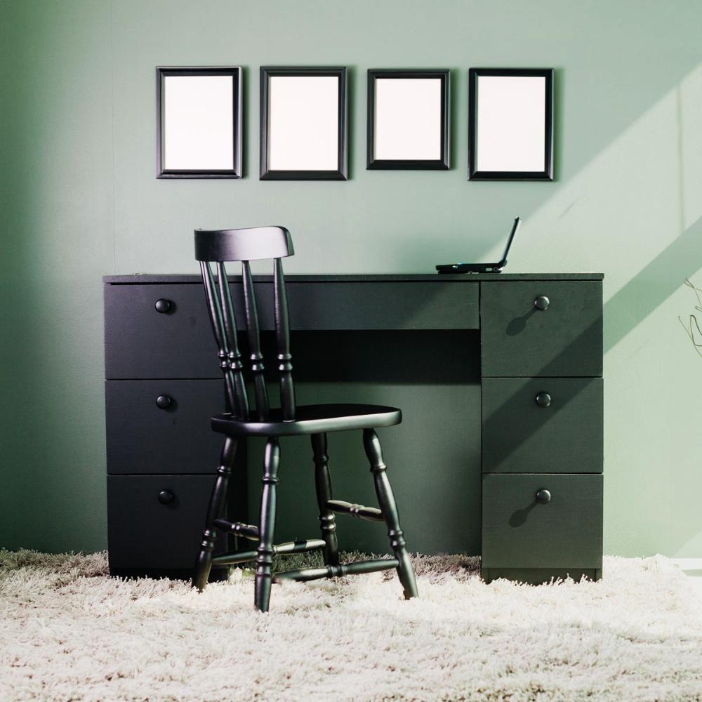 Mesa De Escritório Ditália 7 Gavetas Com Cadeira Pe-100 Preto