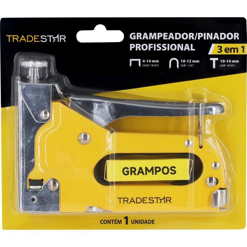 Grampeador Pinador 3 Em 1 TradestarGrampeador Tapeceiro Tradestar Pinador 600 Grampos ProO Grampeador/Pinador Tradestar Pro 3 em 1 é a ferramenta ideal para quem busca praticidade, resistência e eficiência em trabalhos de fixação. Fabricado em aço carbono de alta durabilidade, ele oferece excelente desempenho em tapeçaria, marcenaria, estofados, artesanato e até reparos domésticos, sendo indispensável tanto para profissionais quanto para hobbistas.Seu grande diferencial está na versatilidade, pois aceita três tipos de grampos: o reto, indicado para fixação de tecidos, couro e materiais sintéticos; o em formato “U”, perfeito para fios e cabos; e o em formato “T”, ideal para acabamentos discretos em madeira e outros materiais. Essa flexibilidade torna o Grampeador Tradestar uma ferramenta completa para diferentes necessidades, garantindo sempre firmeza e na aplicação.Com design ergonômico, o manuseio é simples e confortável, reduzindo o esforço durante o uso prolongado. Além disso, acompanha caixa com grampos retos de 6 e 8 mm, prontos para uso imediato, oferecendo ainda mais praticidade ao seu dia a dia.Especificações- Material: Aço carbono de alta resistência- Tipos de grampos aceitos: Reto, U e T- Grampos compatíveis: 6 mm e 8 mm (inclui caixa com grampos retos)- Uso: ManualItens inclusos- 1 Grampeador Pinador 3 Em 1 Garantia- 03 meses com o FabricantePrincipais Características do Produto 0 (bullet_point#0): Fabricado em material de alta qualidade e resistência | Principais Características do Produto 1 (bullet_point#1): Ideal para e doméstico | Principais Características do Produto 2 (bullet_point#2): Proporciona maior durabilidade e eficiência no trabalho | Baterias são necessárias? (batteries_required): Não | external_testing_certification:: CE | included_components: Grampeador Pinador 3 Em 1 Tradestar | manufacturer: Tradestar | number_of_items: | power_source_type: Manual | required_product_compliance_certificate: CE | unit_count: 1 | number_of_boxes: 1 | material : | model_number: | item_length_width_height: | part_number: | deprecated_offering_start_date : | is_expiration_dated_product: | warranty_description: | item_dimensions: | color: | Voltagem: Bivolt