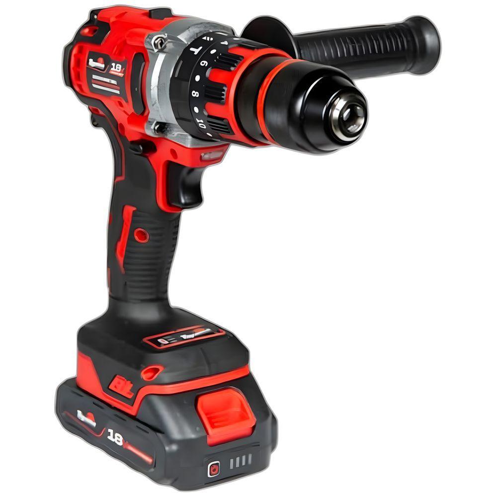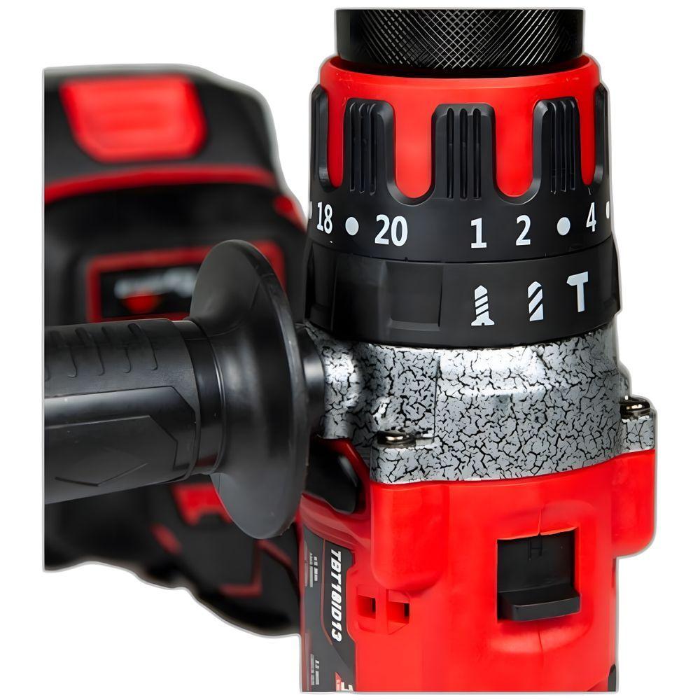 Furadeira Impacto Toyama Tbt18id13 18v Kit Bateria MaletaA Furadeira de impacto a bateria Toyama modelo TBT18ID13-KC é equipada com motor brushless de alta eficiência energética. Conta com mandril de ½” ou 13mm, permitindo o uso de brocas de diversos tamanhos, além de bits para transformar sua furadeira em uma parafusadeira. | | Este modelo oferece 3 modos de operação: Furadeira, Parafusadeira e Furadeira de impacto, praticidade e versatilidade para facilitar suas atividades. | | Para mais praticidade, possui 20 níveis de ajustes de torque, permitindo um uso mais preciso no aperto e remoção de parafusos. É a ferramenta ideal para montagem de móveis, fixação de parafusos, abertura de buracos em paredes, madeiras e outras superfícies. Conta ainda com iluminação de led. | | O modelo TBT18ID13-KC (800-102M), para maior praticidade o equipamento acompanha uma maleta plástica, composta por carregador (bivolt) de 1.5A e bateria de 2.0Ah. Voltagem: 18V