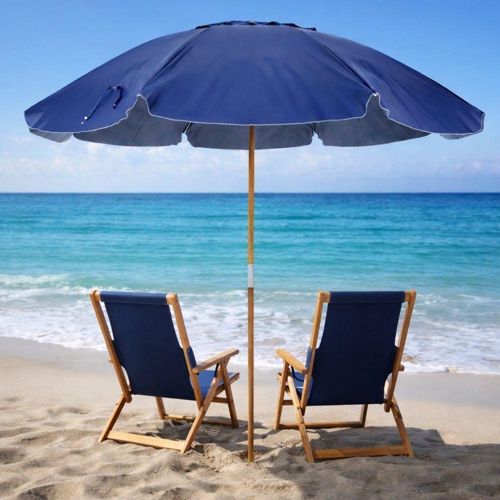 Guarda-sol Praia Caioba 2,40m Azul Marinho Bel Haste Madeira