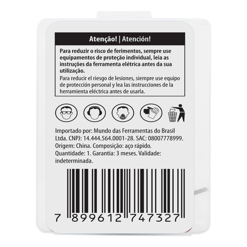 Serra Copo Metal 63mm Denzel 72412055 Nitreto TitânioSerra Copo para Metal 63mm com Revestimento de Nitreto de Titânio Denzel: Perfuração Precisa e DurávelA Serra Copo Denzel 72412055 de 63mm é a solução profissional para quem busca precisão e durabilidade em perfurações de metal, plástico e outros materiais. Ideal para instalações em canteiros de obras, montagem de equipamentos e fixadores, esta serra copo combina a robustez do aço HSS com a proteção do revestimento de nitreto de titânio, garantindo uma vida útil prolongada e resistência à corrosão. Sua haste triangular impede rotações indesejadas no mandril, proporcionando maior estabilidade e controle durante o uso. A mola especial integrada facilita a remoção de resíduos, mantendo a área de trabalho limpa e organizada. Invista em uma ferramenta que eleva a qualidade e a eficiência dos seus projetos de perfuração com a Serra Copo Denzel! Especificações Conexão da coroa: M10x1.5 Material de usinagem: Metal, Plástico Profundidade máxima de perfuração: 14 mm País de fabricação: China Altura na embalagem: 130 mm Comprimento na embalagem: 110 mm Peso bruto: 0.23 kg Largura na embalagem: 23 mm Itens Inclusos Serra Copo Denzel 72412055 63mm Perguntas Frequentes (FAQ) Pergunta: Qual o material da Serra Copo Denzel?Resposta: A serra copo é fabricada em aço HSS (Aço Rápido) com revestimento de nitreto de titânio. Pergunta: Para quais materiais esta serra copo é indicada?Resposta: É indicada para perfurar metais pretos, metais coloridos e plásticos. Pergunta: Qual o diâmetro da serra copo?Resposta: O diâmetro da serra copo é de 63mm. Pergunta: Qual a garantia do produto?Resposta: Garantia legal: 90 dias Produto: Serra | Tipo de Produto: Serra