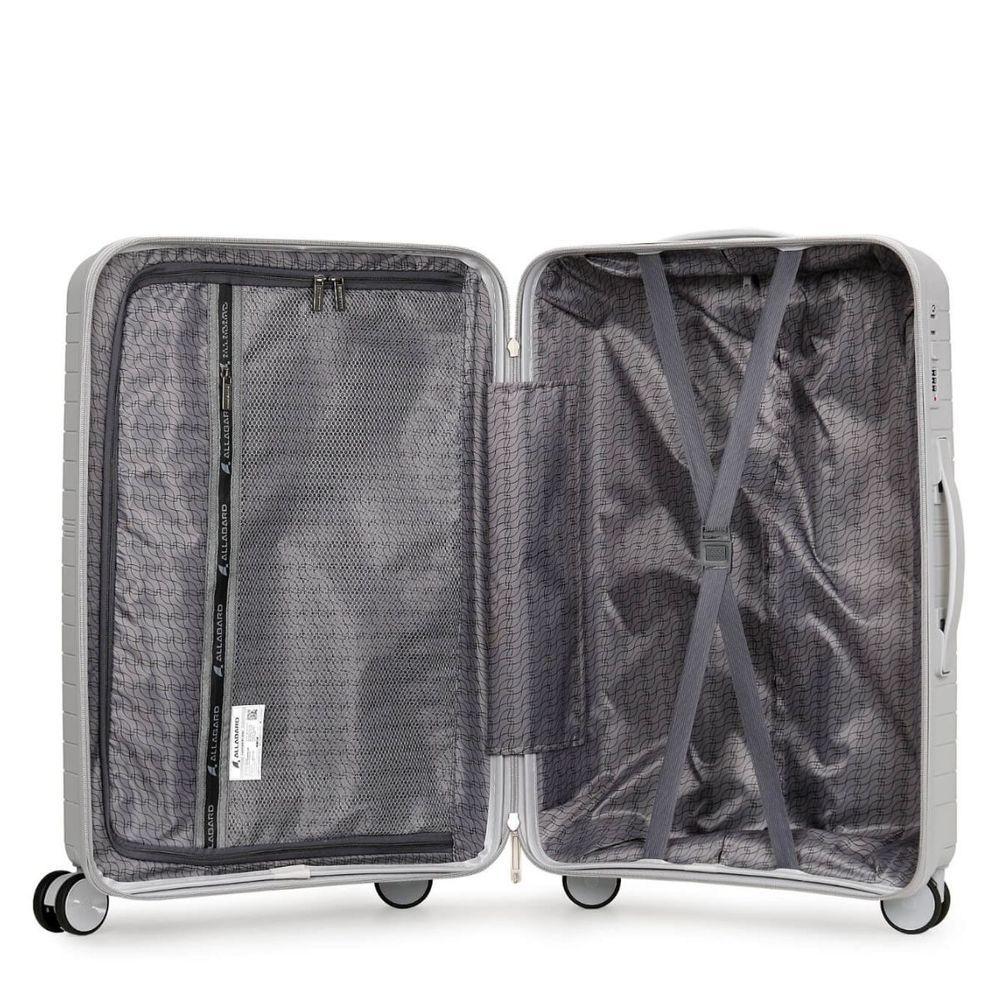 Mala De Viagem 23kg Média Em Polipropileno Anti Impacto Zíper Anti Furto Rodas 360º - Portland - Allabard Prata
