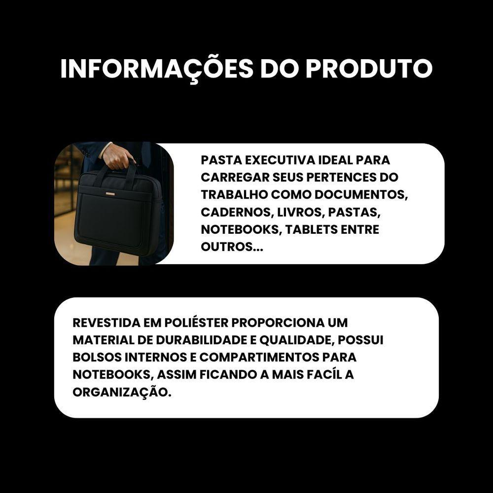 Pasta De Trabalho Masculina Executiva Para Notebook Reforçada Impermeável Em Poliéster - Plus - Yin's Ys33027Descubra a pasta de trabalho masculina executiva para notebook da Yin's, feita em poliéster reforçado e impermeável, ideal para profissionais que buscam segurança e estilo. Com design moderno e funcional, ela oferece amplo espaço interno para organizar seu laptop e documentos, garantindo proteção contra impactos e umidade. Seu acabamento em material resistente e alça confortável assegura durabilidade e praticidade no dia a dia corporativo.Principais benefícios:- Compartimento acolchoado para notebooks de até 17- Material impermeável que protege contra chuva e respingos- Estrutura reforçada que mantém seus itens organizados e seguros- Alça ajustável e alças de mão acolchoadas para transporte confortável- Bolsos frontais com zíper para fácil acesso a acessórios e documentos importantesIdeal para executivos, essa pasta une sofisticação e funcionalidade, tornando-se companheira indispensável para quem valoriza organização e proteção no trabalho. Garanta já uma experiência premium em mobilidade corporativa.Ficha Técnica: Marca: Yin's Material: Poliéster Garantia: 03 meses Altura: 28 cm Largura: 38 cm Profundidade: 8 cm Capacidade em volume: 8 litros Peso líquido: 500g Compartimentos: 5 compartimentosDúvidas FrequentesQual o prazo de postagem?Nosso prazo de postagem é de no máximo 1 dia útil, podendo ser até no mesmo dia da confirmação da compra, dependendo do horário.Como o produto vem embalado?Nossos produtos são embalados com embalagens resistentes para que cheguem até você em perfeito estado.O produto possui garantia?Sim, todos os nossos produtos são originais e possuem garantia de fabricação de no mínimo 90 dias, conforme previsto no código de defesa do consumidor.
