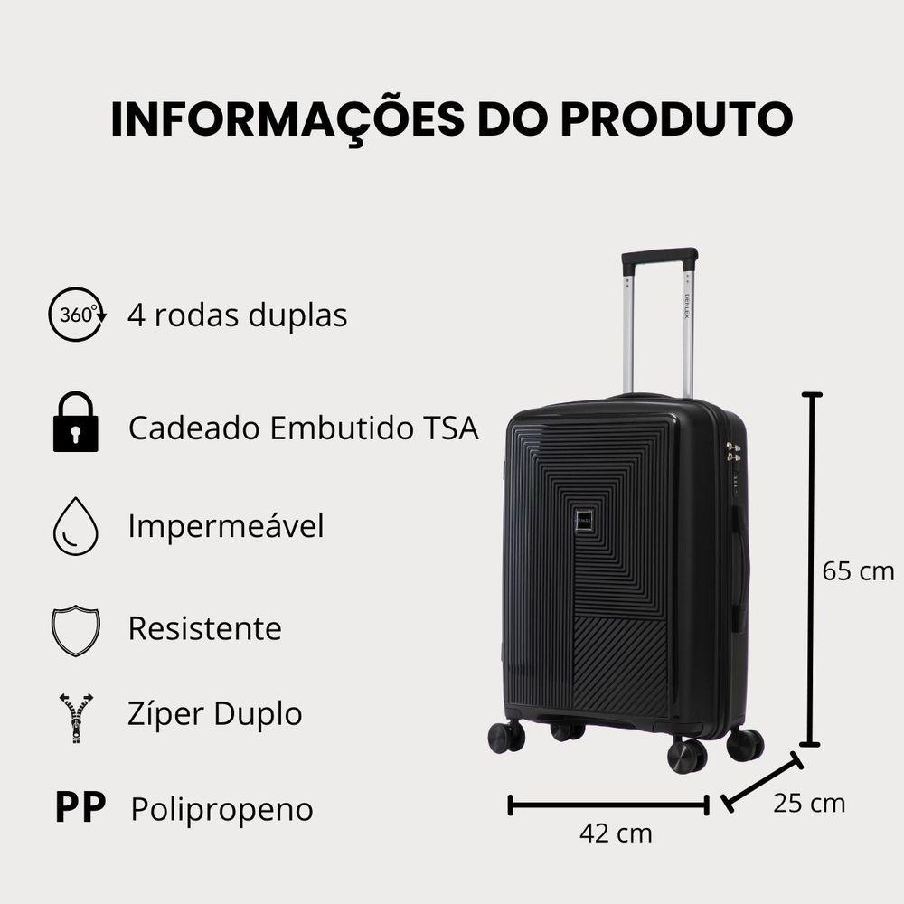 Mala Média 23kg Viagem Resistente Flexível Em Polipropileno Rodinhas 360º Tsa - Quito - Denlex Preto