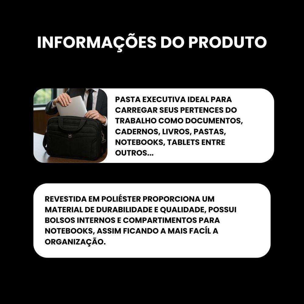Pasta De Trabalho Masculina Executiva Para Notebook Reforçada Impermeável Em Poliéster - Plus - Yin's Ys33024Descubra a pasta de trabalho masculina executiva para notebook da Yin's, feita em poliéster reforçado e impermeável, ideal para profissionais que buscam segurança e estilo. Com design moderno e funcional, ela oferece amplo espaço interno para organizar seu laptop e documentos, garantindo proteção contra impactos e umidade. Seu acabamento em material resistente e alça confortável assegura durabilidade e praticidade no dia a dia corporativo.Principais benefícios:- Compartimento acolchoado para notebooks de até 17- Material impermeável que protege contra chuva e respingos- Estrutura reforçada que mantém seus itens organizados e seguros- Alça ajustável e alças de mão acolchoadas para transporte confortável- Bolsos frontais com zíper para fácil acesso a acessórios e documentos importantesIdeal para executivos, essa pasta une sofisticação e funcionalidade, tornando-se companheira indispensável para quem valoriza organização e proteção no trabalho. Garanta já uma experiência premium em mobilidade corporativa.Ficha Técnica: Marca: Yin's Material: Poliéster Garantia: 03 meses Altura: 28 cm Largura: 38 cm Profundidade: 8 cm Capacidade em volume: 8 litros Peso líquido: 500g Compartimentos: 5 compartimentosDúvidas FrequentesQual o prazo de postagem?Nosso prazo de postagem é de no máximo 1 dia útil, podendo ser até no mesmo dia da confirmação da compra, dependendo do horário.Como o produto vem embalado?Nossos produtos são embalados com embalagens resistentes para que cheguem até você em perfeito estado.O produto possui garantia?Sim, todos os nossos produtos são originais e possuem garantia de fabricação de no mínimo 90 dias, conforme previsto no código de defesa do consumidor.