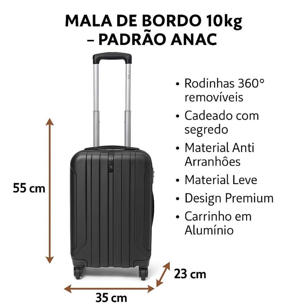 Mala De Viagem De Bordo P/ 10kg Em Abs Com Rodinhas 360º Removíveis E Leve - Padrão Anac - Qualis Cor Preto Mb003