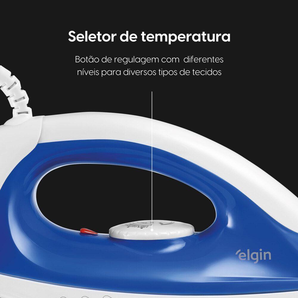 Ferro De Passar Iron Force Plus - Base Antiaderente Salva Botões 1.100w 110vO Ferro de Passar a Seco Elgin é a escolha perfeita para quem busca praticidade e eficiência no dia a dia. Com um design compacto e leve, ele pode ser facilmente transportado, sendo ideal até para levar na mala de viagem e manter suas roupas impecáveis onde quer que esteja.Sua base antiaderente garante um deslizamento suave, facilitando o processo de passar roupas sem esforço. Além disso, conta com um botão seletor de temperatura, permitindo ajustar o calor conforme o tipo de tecido, proporcionando mais cuidado e segurança ao vestir.A lâmpada piloto indica quando o ferro está aquecendo e pronto para uso, evitando desperdício de energia e garantindo a temperatura ideal para cada peça.Com potência de 1.100W (110V), o ferro aquece rapidamente e entrega resultados eficientes, tornando sua rotina mais ágil. Além disso, oferece proteção contra superaquecimento e um cabo giratório, que proporciona maior liberdade de movimentos.E para mais praticidade, seu case com salva-botões evita danos aos botões e costuras, garantindo um cuidado ainda mais delicado com suas roupas. A Elgin oferece garantia expressa de 1 ano, para que você use seu ferro com total tranquilidade.Características:Base antiaderenteDesign compactoBotão seletor de temperaturaLâmpada PilotoDesliza muito mais fácil1.100W de potênciaSalva botõesMais potenteLuz indicadora de funcionamentoGarantia expressa de 1 anoEspecificações Técnicas:Nome do produt: Ferro de Passar Iron Force Plus - Base Antiaderente Salva Botões 1.100W 110VVoltagem: 127vPotência (W): 1100Troca Expressa: SimAjuste de temperatura: SimBase antiaderente: SimPoupa botões: SimFunção vapor: NãoFunção a seco: NãoCabo giratório: SimEAN: 7908412510755