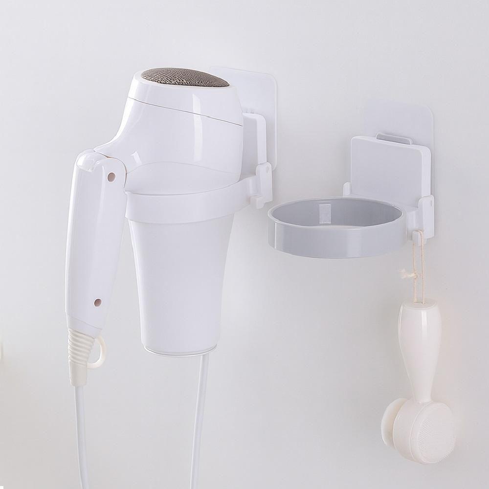 Suporte Secador De Cabelo Sem Furo Organizador Fios Adesivo Parede 2 Em 1 Gancho Pendurar Porta Acessorios Banheiro Quar