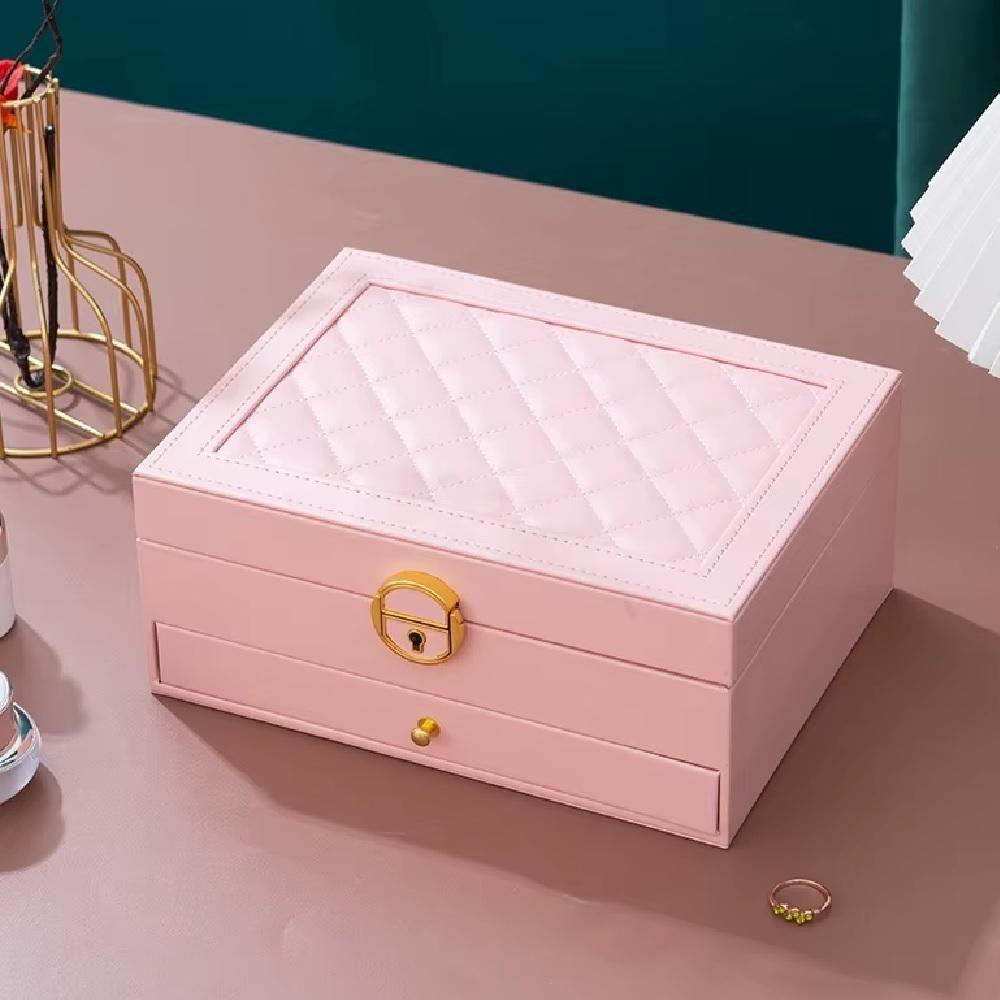Maleta Porta Joias Organizador Com Gaveta 2 Andares Para Brincos Aneis Pulseiras Relogio Viagem Rosa