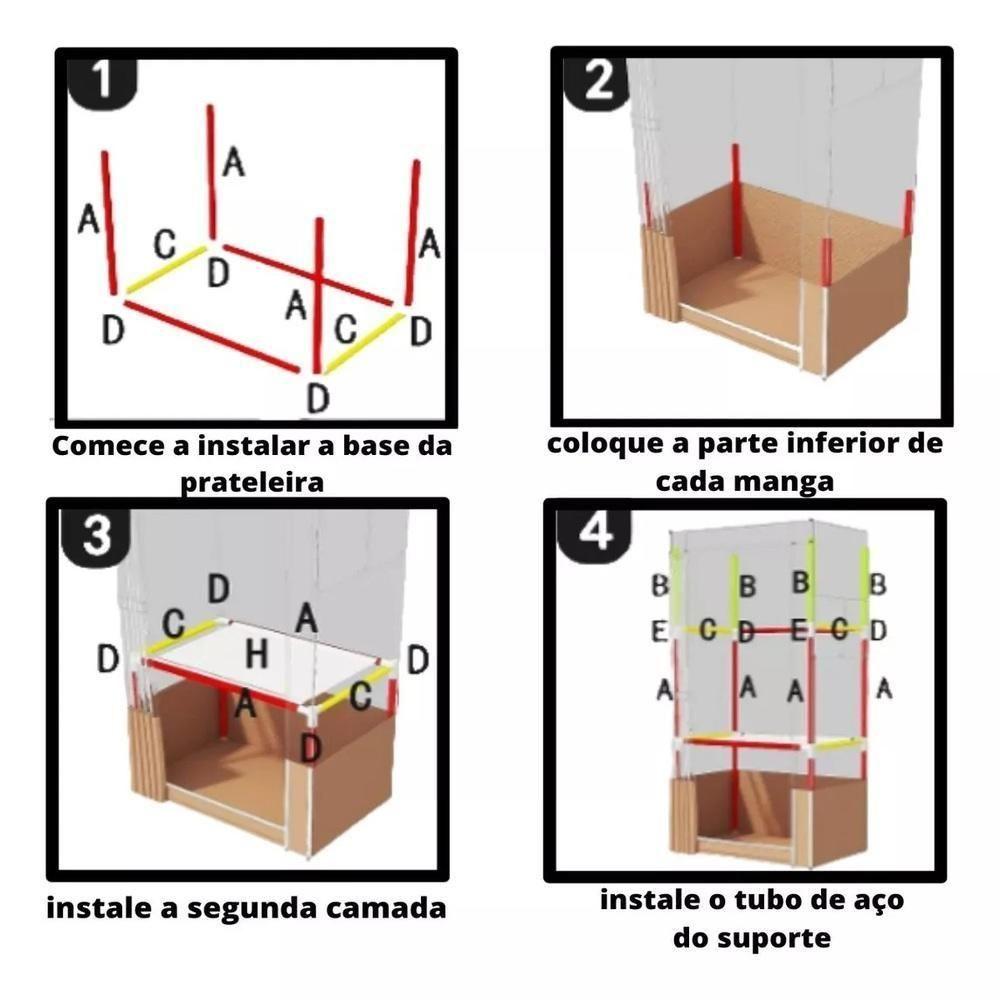Guarda Roupa Dobravel Portatil Com Cabideiro Prateleira Multiuso Organizador Infantil Adulto Praia Brinquedos Preto