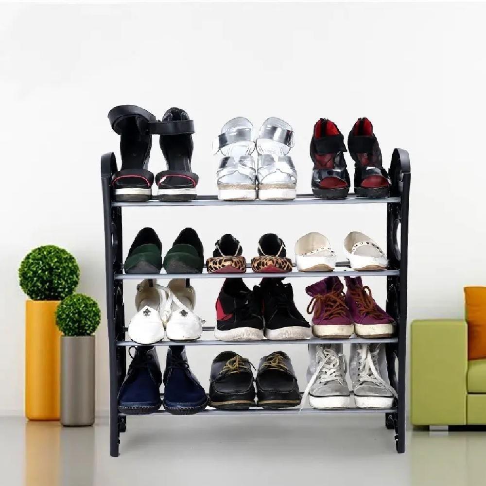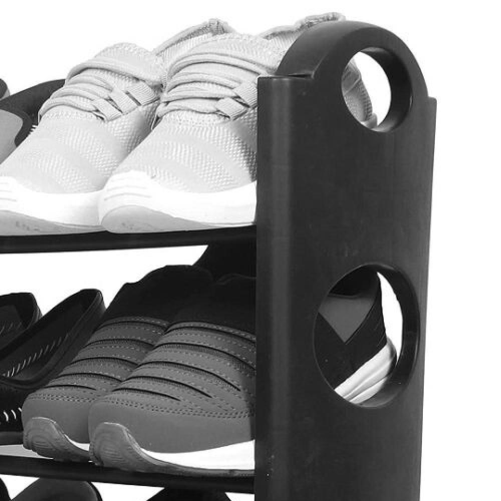 Sapateira 12 Pares Grande Ampliavel Empilhavel Estante Desmontavel 4 Prateleiras Em Aluminio Organizadora Preta
