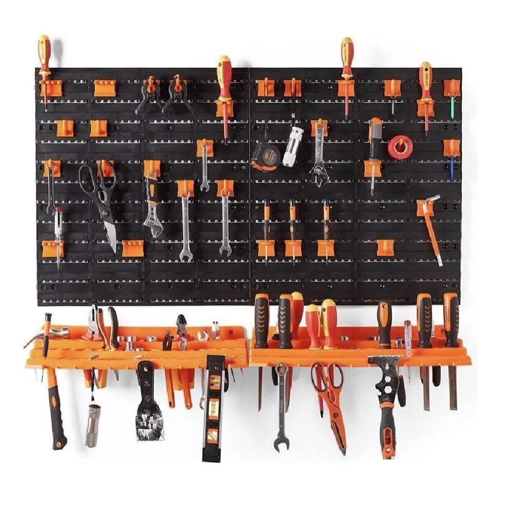 Gaveteiro Porta Ferramentas Estante Organizador De Bancada Chaves Prego Prateleira Multiuso 52 Peças Para ParedeEstante Porta Ferramentas Organizador 52 Peças - KangurTenha suas ferramentas sempre organizadas e acessíveis com a Estante Porta Ferramentas Kangur, projetada para facilitar o dia a dia em oficinas, garagens e estações de trabalho domésticas. Versátil e durável, este organizador é a solução ideal para quem valoriza um ambiente funcional e livre de bagunça.Características do Produto:Organização Completa: Inclui 2 pegboards, 2 prateleiras e 50 ganchos variados, totalizando 52 peças para acomodar diferentes tipos de ferramentas e acessórios.Capacidade de Armazenamento: As prateleiras suportam até 13 libras, ideais para guardar itens pesados com .Material Resistente: Fabricado em plástico de alta durabilidade, com resistência a impactos, garantindo um uso prolongado.Design Modular: Fácil de montar e personalizar conforme suas necessidades de organização.Compatibilidade com Paredes : Permite fixação em diversos tipos de paredes (parafusos de fixação não incluídos).Vantagens e Benefícios:Versatilidade: Perfeito para armazenar ferramentas manuais como martelos, alicates, chaves de fenda, além de parafusos, porcas, clipes e outros pequenos acessórios.Economia de Espaço: Mantenha suas ferramentas bem organizadas e otimize o espaço em oficinas e garagens.Durabilidade Garantida: Material robusto que resiste ao uso diário e à manipulação de ferramentas pesadas.Facilidade de Montagem: Estrutura prática e funcional para instalar sem complicações.Especificações Técnicas:Dimensões do Pegboard: 48 x 54 cmDimensões da Prateleira: 47,7 x 22 x 77 cmQuantidade de Peças: 52 (2 pegboards, 2 prateleiras e 50 ganchos variados).Organize sua estação de trabalho com praticidade e estilo utilizando a Estante Porta Ferramentas Kangur. Funcionalidade e resistência para atender até as maiores coleções de ferramentas. Adquira já o seu!obs: Vídeo ilustrativoEstante Porta Ferramentas Organizador 52 Peças - KangurTenha suas ferramentas sempre organizadas e acessíveis com a Estante Porta Ferramentas Kangur, projetada para facilitar o dia a dia em oficinas, garagens e estações de trabalho domésticas. Versátil e durável, este organizador é a solução ideal para quem valoriza um ambiente funcional e livre de bagunça.Características do Produto:Organização Completa: Inclui 2 pegboards, 2 prateleiras e 50 ganchos variados, totalizando 52 peças para acomodar diferentes tipos de ferramentas e acessórios.Capacidade de Armazenamento: As prateleiras suportam até 13 libras, ideais para guardar itens pesados com .Material Resistente: Fabricado em plástico de alta durabilidade, com resistência a impactos, garantindo um uso Modular: Fácil de montar e personalizar conforme suas necessidades de organização.Compatibilidade com Paredes : Permite fixação em diversos tipos de paredes (parafusos de fixação não incluídos).Vantagens e Benefícios:Versatilidade: Perfeito para armazenar ferramentas manuais como martelos, alicates, chaves de fenda, além de parafusos, porcas, clipes e outros pequenos acessórios.Economia de Espaço: Mantenha suas ferramentas bem organizadas e otimize o espaço em oficinas e garagens.Durabilidade Garantida: Material robusto que resiste ao uso diário e à manipulação de ferramentas pesadas.Facilidade de Montagem: Estrutura prática e funcional para instalar sem complicações.Especificações Técnicas:Dimensões do Pegboard: 48 x 54 cmDimensões da Prateleira: 47,7 x 22 x 77 cm Quantidade de Peças: 52 (2 pegboards, 2 prateleiras e 50 ganchos variados).Organize sua estação de trabalho com praticidade e estilo utilizando a Estante Porta Ferramentas Kangur. Funcionalidade e resistência para atender até as maiores coleções de ferramentas. Adquira já o seu! obs: Vídeo ilustrativo