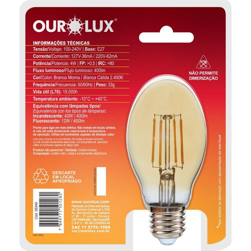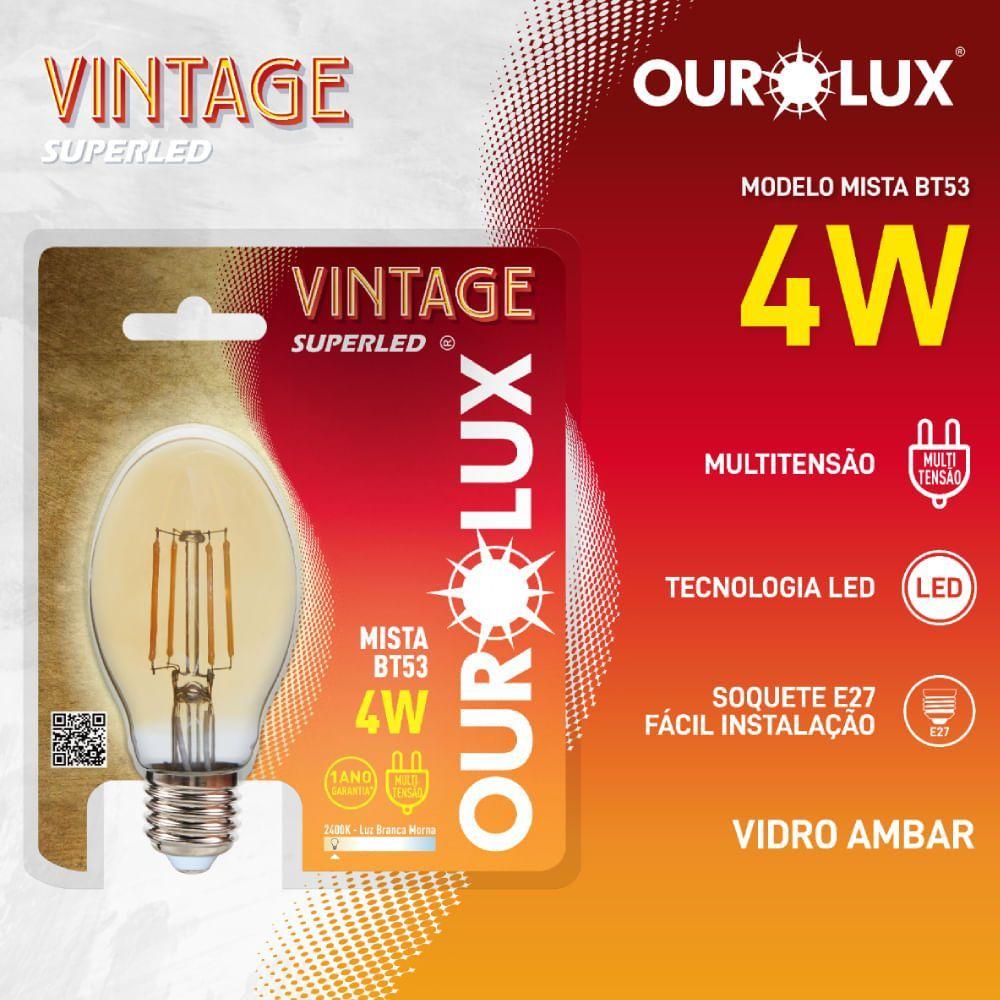 Lâmpada Vintage Superled Mista Bt53 4w Biv 2400k - 05339 - Ourolux Vintage Led Mista Bt53 4w Biv 2400k Ourolux -05339