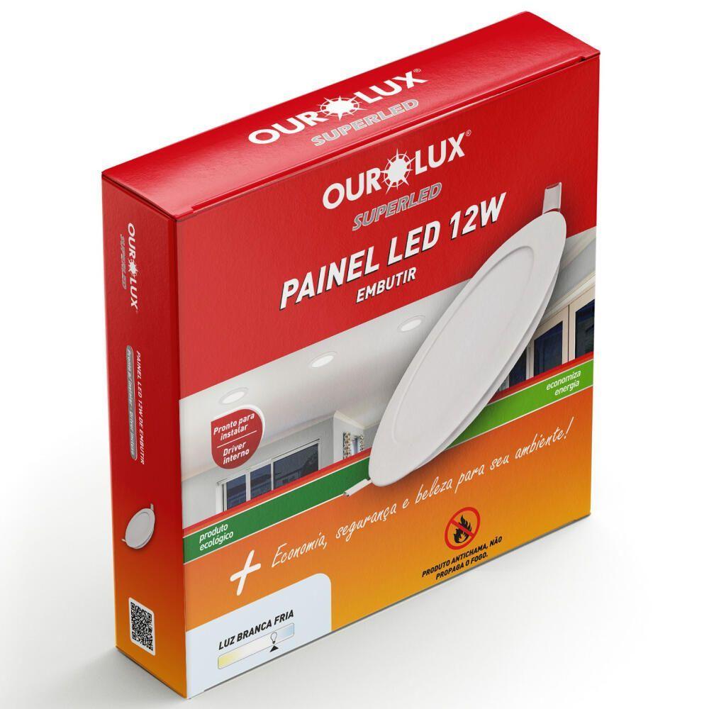 Painel Led Super Eco Embutir 12w Biv 6500k Redondo - 02901 - Ourolux Painel Abs Led Embutir 12w Biv 6500k Red. Ourolux