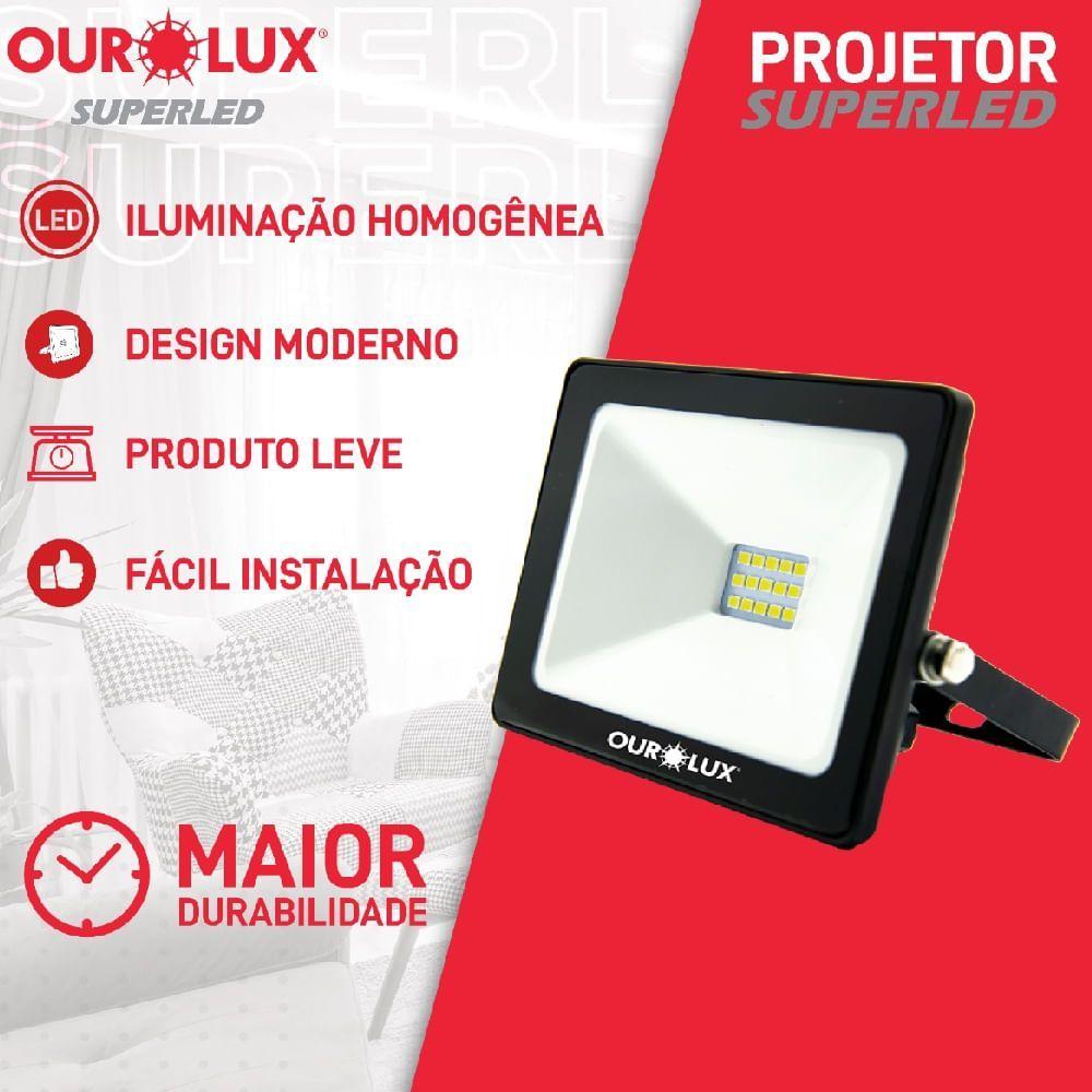 Projetor Led Slim 50w Preto 3000k - Ourolux Refletor Led Slim 3000k 50w Preto Bivolt