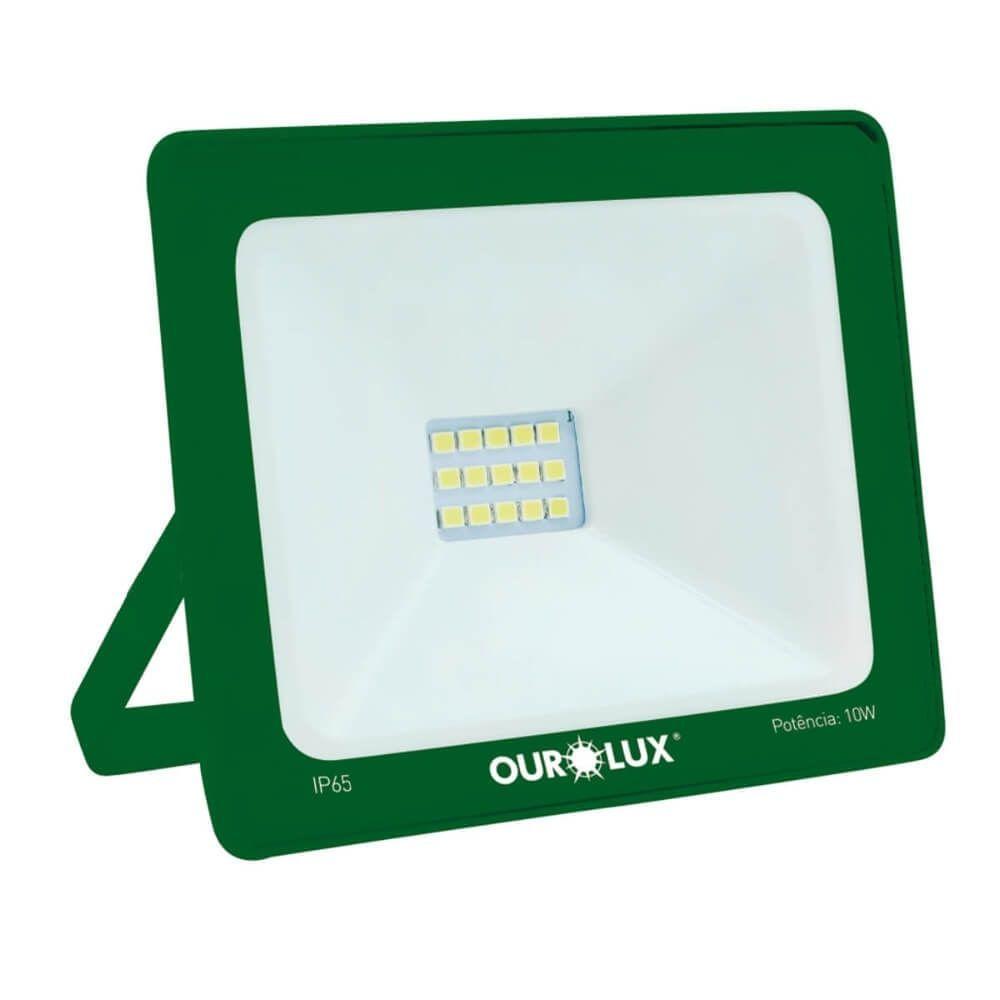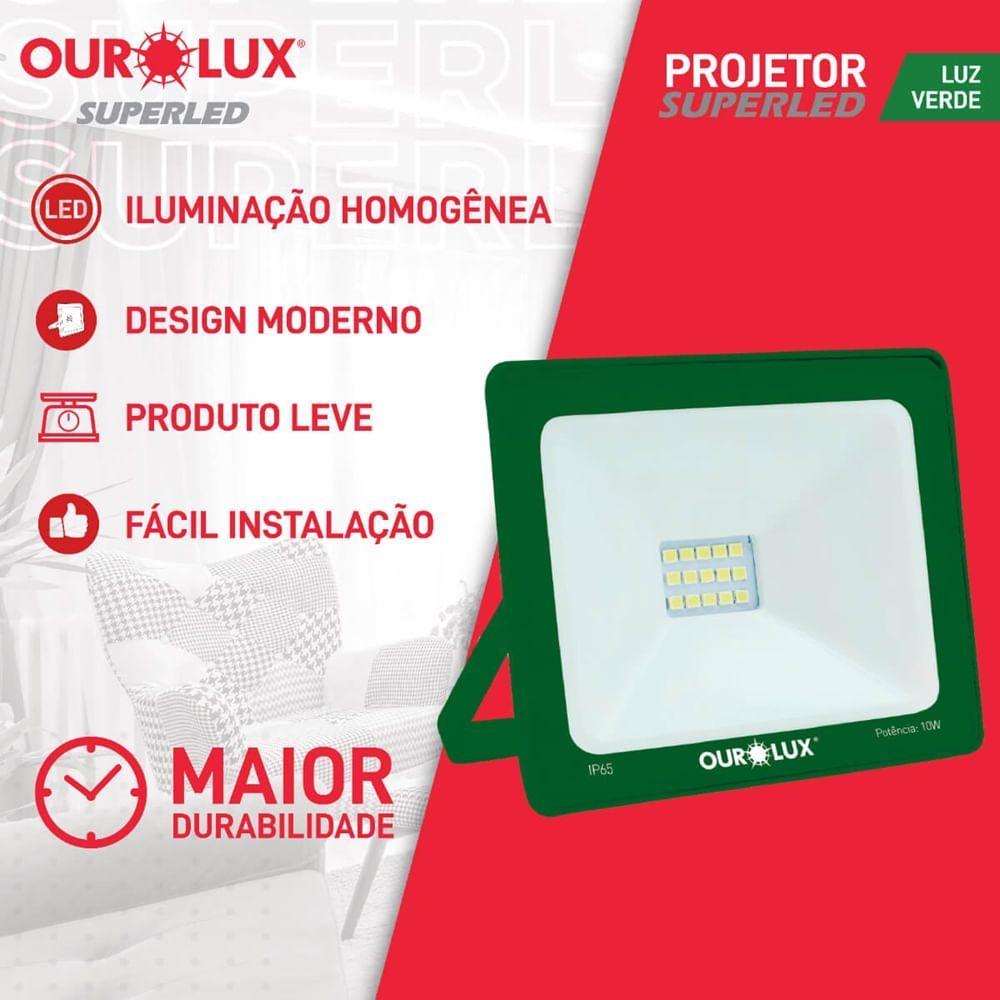 Projetor Slim Superled Verde 10 Watts Bivolt - 03280 - Ourolux Refletor Led Slim 10w Bivolt Verde Ourolux