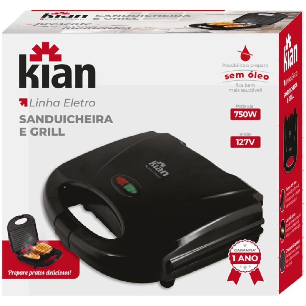 Sanduicheira Grill 750 Watts Preto Kian 110V