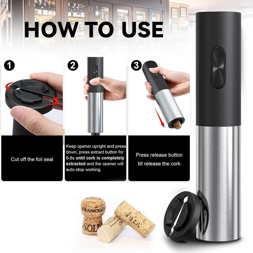 Abridor Vinhos Eletrico Saca Rolhas Automatico Portatil Inox Premium Adega A Pilha