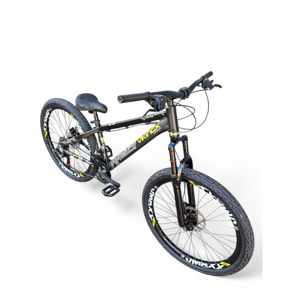 Bicicleta Aro 26 Vikingx Tuff Câmbios Shimano 21v Freeride Freio A Disco Aro Vmaxx Pneu Flame preto X30Bike aro 26, vikingx tuff, nova na caixa a pronta entrega, produto com ótima qualidade e acabamento, possui 21 marchas com sistema de alavancas rapid fire que a cada clique uma marcha é trocada, câmbios Shimano sistema de freio a disco, pneu flame. Segue abaixo características da bike:Quadro 26 VikingX Tuff em AlumínioGarfo suspensão aço pretoSuporte do guidão em alumínio pretoGuidão 31.8mm em alumínio pretoCanote do selim 27.2 em alumínio preto Sem carrinhoSelim GTA Freeride PretoAbraçadeira do Selim alumínio PretoAros Vmaxx DH Super reforçadosRaios PretosCubos PretosPneus 26x2.125 FlameMovimento central selado rolamentadoFreios a disco mecânico com discos inox 160mmAlavancas Semi-automáticas Rapid FireCâmbio Traseiro Shimano TZCâmbio Dianteiro Shimano TZCorrente IndexPedivela Aço RevestidoPedal Plataforma Nylon pretoRoda Livre 7v indexBicicleta pré montada, vai precisar apenas fixar a roda dianteira, guidão, selim e pedais. Recomendamos que seja feita uma revisão por um técnico após a recebimento do produto, para reajuste e regulagem, pois no transporte pode acontecer de alguma peça soltar ou desregularFotos meramente ilustrativas