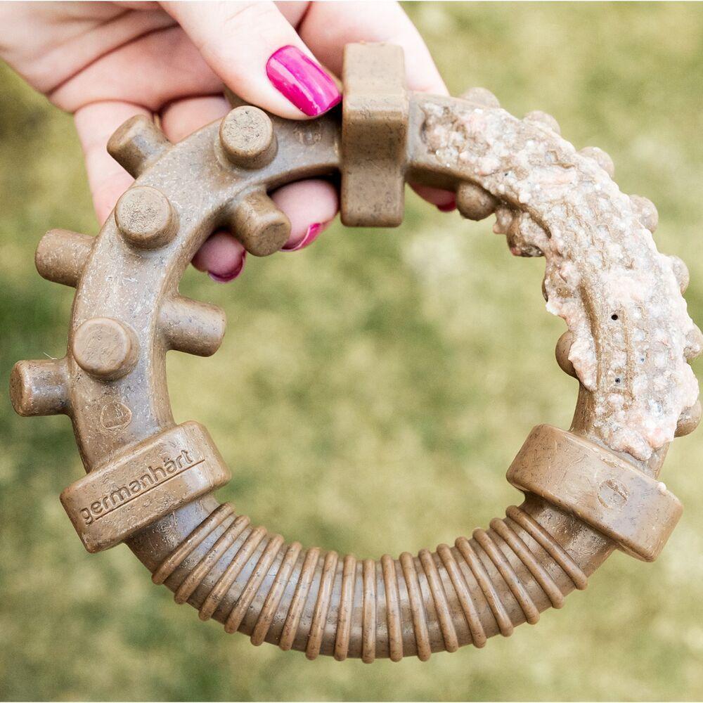 Roscão De Bacon Interativo E Texturizado Para Cães - Diversão E Sabor Garantidos!Conheça o Roscão de Bacon Germanhart, um brinquedo interativo e texturizado que se destaca por sua inovação e qualidade. Elaborado com um material sustentável que combina PP e fibra de coco, este produto é uma escolha consciente para os amantes de animais que se preocupam com o meio ambiente.Com um aroma irresistível de bacon, o Roscão foi projetado para estimular o instinto natural de roer dos cães, oferecendo uma alternativa saudável que ajuda a evitar que eles ataquem móveis e outros objetos da casa. O aroma se mantém presente durante todo o uso, proporcionando uma experiência sensorial duradoura para o seu pet.O design do Roscão é estratégico, apresentando uma parte sempre levantada que facilita a interação do cão ao apanhar o brinquedo. Isso torna o acesso mais simples e a brincadeira ainda mais prazerosa, garantindo que os momentos de diversão se tornem uma prática comum na rotina do seu amigo de quatro patas.Uma das características que torna o Roscão ainda mais especial é a presença de três opções de textura. Esta variedade não só proporciona um estímulo diferente ao pet, como também auxilia na limpeza dental. As texturas permitem a inserção de pastas, tornando o brinquedo extremamente atrativo e contribuindo para a higiene bucal do seu animal de estimação.A constante liberação do aroma de bacon junto com seu design interativo faz do Roscão uma fonte ideal de distração. Isso mantém o seu pet entretido e ajuda a evitar o tédio, promovendo um bem-estar físico e mental que é crucial para a saúde do animal.Escolher o Roscão de Bacon Germanhart é proporcionar ao seu pet uma experiência de brincadeira enriquecedora e saborosa. Esta oportunidade não só melhora a qualidade de vida do seu animal, mas também fortalece os laços afetivos entre você e seu amigo, transformando momentos de brincadeira em memórias inesquecíveis.