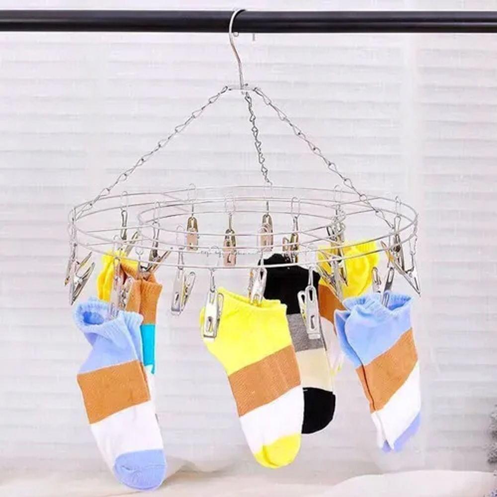 Mini Varal Aço Inox Multiuso 20 Prendedores Redondo TetoDescrição do ProdutoO Mini Varal Redondo em Aço Inox com 20 prendedores é a solução prática e resistente para secar peças pequenas de forma organizada. Compacto e fácil de pendurar, é ideal para ambientes internos e externos, trazendo mais praticidade ao seu dia a dia.Benefícios do Mini Varal- Estrutura em aço inox resistente e durável- Não enferruja mesmo em áreas úmidas- 20 prendedores com trava anti-ventania- Ideal para peças pequenas: meias, roupas íntimas, máscaras e roupas infantis- Design compacto, leve e fácil de transportarCaracterísticas Técnicas- Material: Aço inoxidável- Formato: Redondo- Diâmetro: 35 cm- Quantidade de prendedores: 20 unidades- Resistência à ferrugem e ao desgaste- Sistema de prendedores com trava para maior segurançaIndicações de Uso- Ideal para apartamentos e lavanderias com pouco espaço- Pode ser pendurado em varais, ganchos e suportes- Organiza a secagem sem embaraçar as roupas- Perfeito para uso diário em ambientes internos e externosConteúdo da Embalagem- 01 Mini Varal Redondo de Aço Inox com 20 prendedores