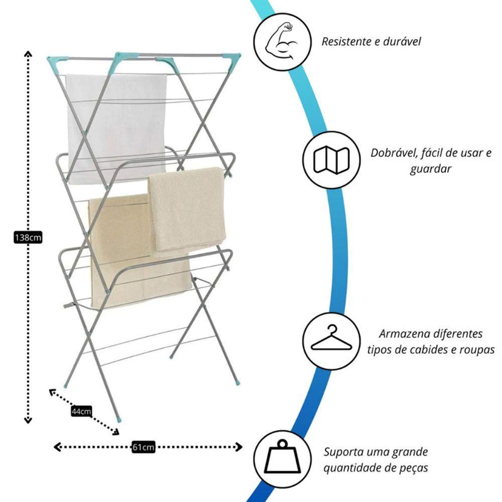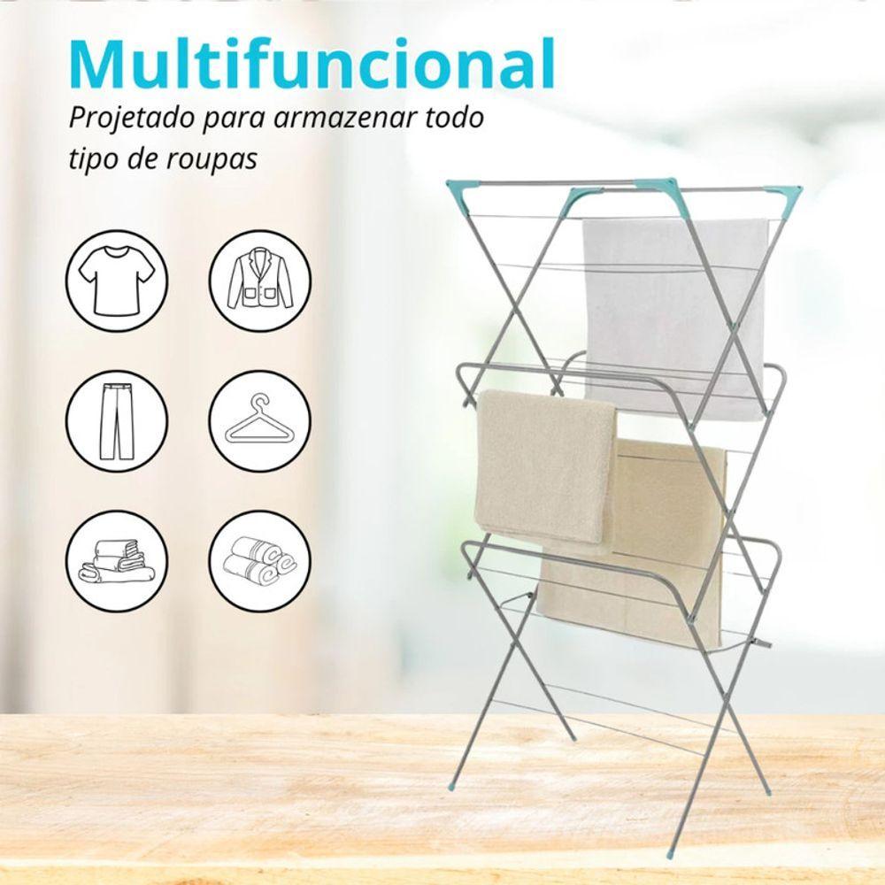Varal Chão Vertical Dobrável Sanfonado 3 Andares Extensível