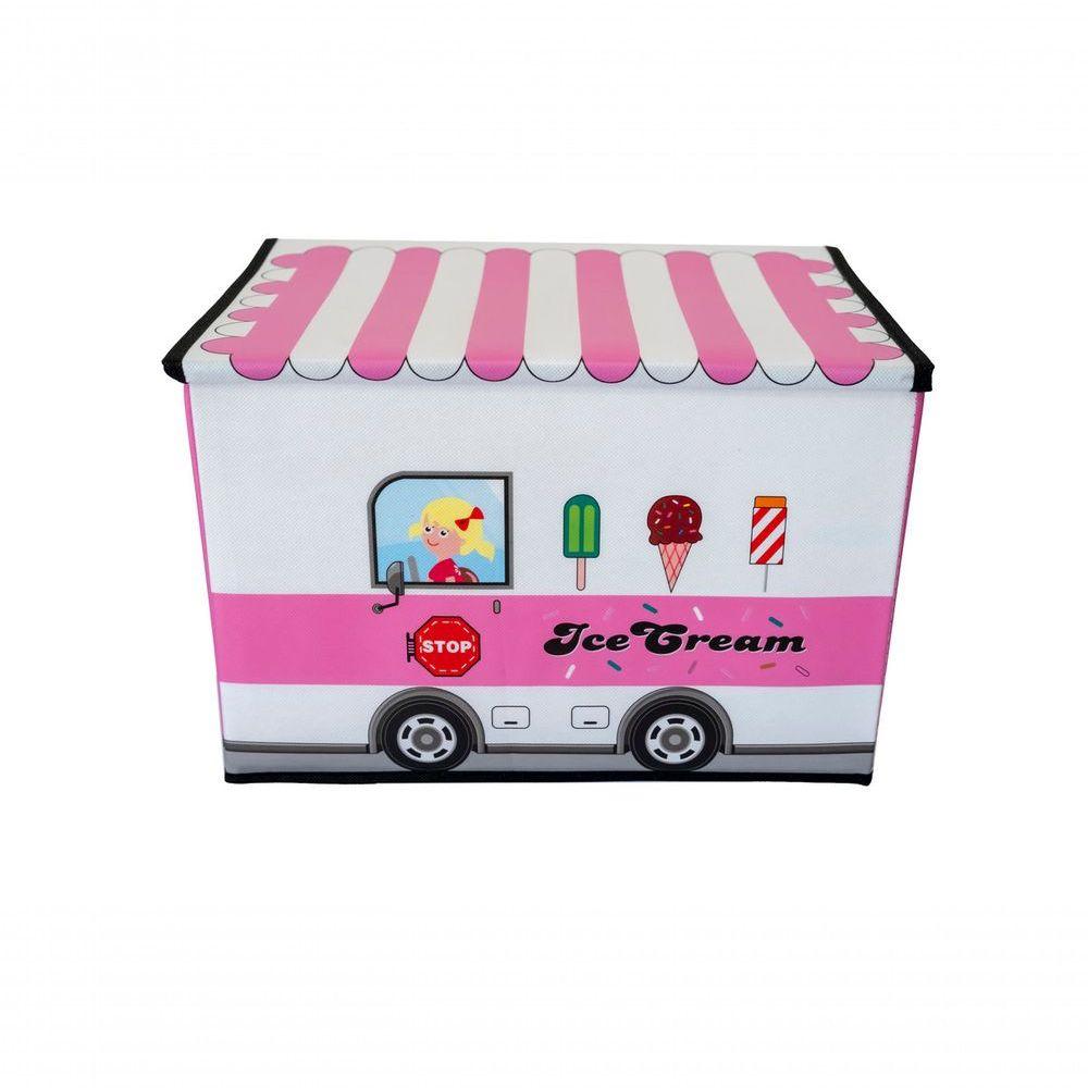 Caixa Organizadora Infantil Tampa Brinquedoteca Armazenament Cor:sorveteria Rosa