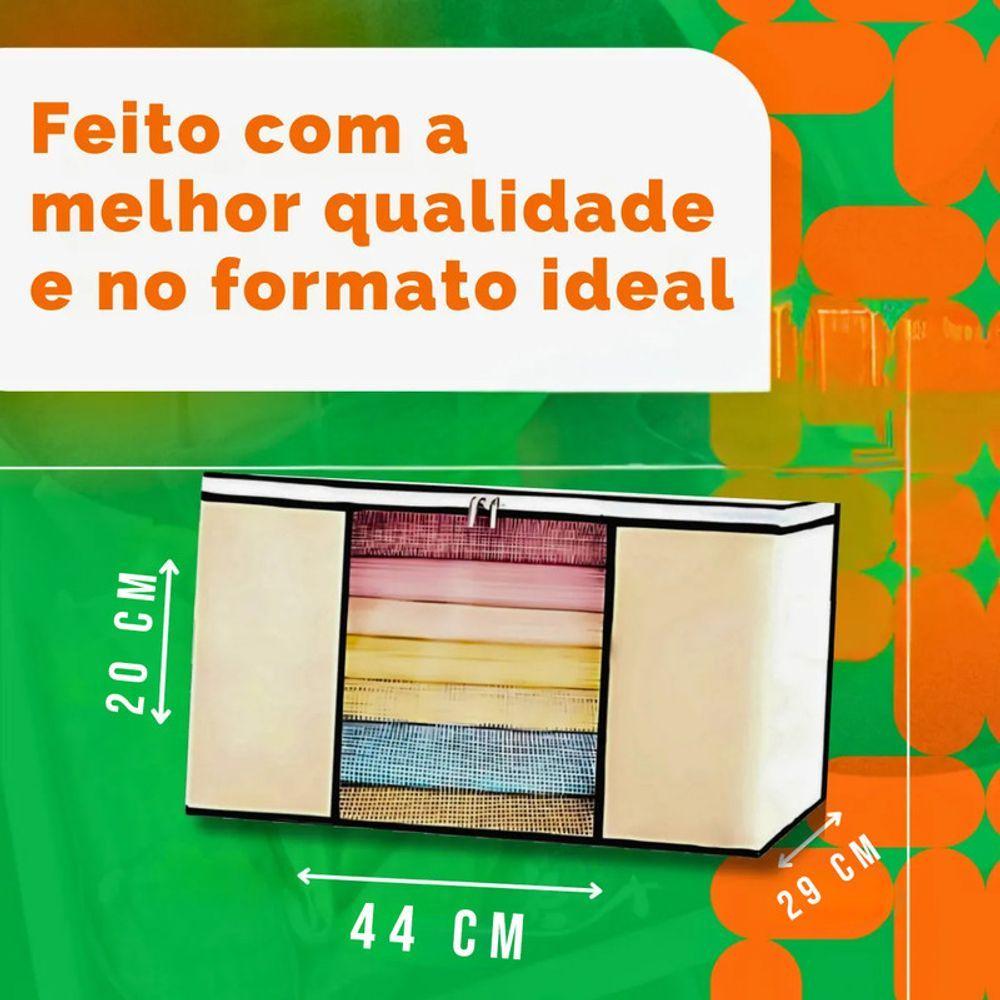 Organizador Dobrável Com Visor 44x29x28cm Roupas Edredons BrOrganizador Multiuso Dobrável com Visor – 44x29x28cm – MarfimOrganização com elegância, praticidade e proteção para suas roupas e acessóriosO Organizador Multiuso Dobrável com Visor é a solução ideal para manter roupas, edredons, mantas, travesseiros, brinquedos e outros itens protegidos e organizados, ocupando o mínimo de espaço possível. Fabricado com material leve, resistente e acabamento em viés de gorgorão, este organizador alia funcionalidade, durabilidade e um design moderno e discreto na cor marfim.Com visor frontal transparente, permite identificar o conteúdo com facilidade, dispensando aberturas desnecessárias. Seu formato retangular e estrutura dobrável otimizam o espaço em armários, closets, prateleiras e lavanderias, sendo perfeito para o uso doméstico em qualquer época do ano — especialmente útil para guardar roupas de estação ou enxoval de bebê.Indispensável para quem valoriza um ambiente limpo, arrumado e livre de mofo, poeira e umidade, este organizador é ideal para quem busca praticidade sem abrir mão da estética.Destaques do Produto:Visor transparente para rápida visualização do conteúdoEstrutura dobrável: economiza espaço quando não está em usoDesign moderno e limpo na cor marfimExcelente para armazenar roupas de cama, inverno, bebê, brinquedos e maisProtege contra poeira, umidade e fungosPode ser utilizado em closets, armários, lavanderias e áreas de serviçoEspecificações Técnicas:Tamanho: 44cm (comprimento) x 29cm (largura) x 28cm (altura)Cor: MarfimMaterial: Tecido com acabamento em viés de gorgorãoEstrutura: Dobrável e leveVisor: Transparente na parte frontalCapacidade: Aproximadamente 35 litrosConteúdo da embalagem: 1 organizador multiusoRecomendado para uso internoPor que escolher este organizador?Ideal para guardar roupas que não estão em usoAjuda a manter tudo visível, acessível e protegidoPerfeito para otimizar espaço em ambientes pequenosDesign discreto que combina com qualquer decoraçãoProduto prático, funcional e com excelente custo-benefícioGaranta agora seu Organizador Multiuso com Visor e leve mais praticidade, proteção e beleza para a organização da sua casa. Compre hoje mesmo e experimente a diferença de um ambiente sempre em ordem!
