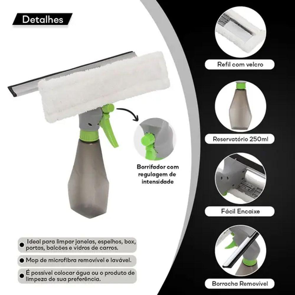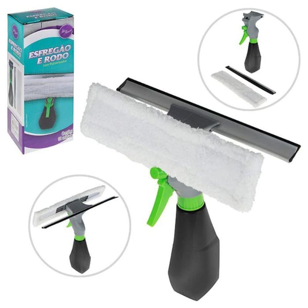 Limpa Vidro 3em1 Rodo Esponja Microfibra Borrifador Limpeza