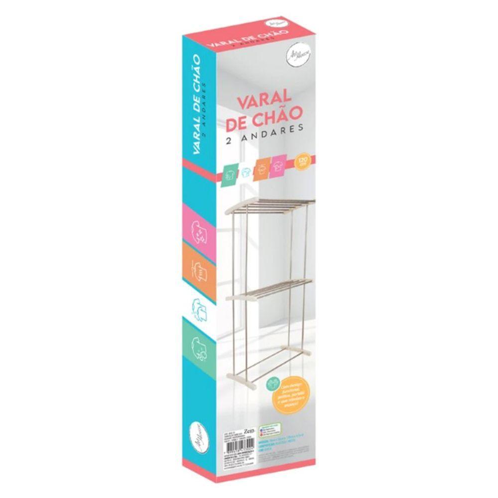 Varal De Chão Roupas Dobrável 2 Andares Reforçados RetrátilVaral de Chão Dobrável com 2 Andares – Compacto, Reforçado e Ideal para Espaços PequenosGanhe mais praticidade e eficiência na sua rotina com o Varal de Chão Dobrável 2 Andares. Projetado especialmente para quem busca otimizar espaço sem abrir mão da capacidade de secagem, este varal é leve, resistente e fácil de usar, sendo a solução ideal para apartamentos, lavanderias compactas e ambientes com pouco espaço disponível.Destaques do Produto:Design vertical com 2 andares: Aproveite melhor o espaço com capacidade para secar diversas peças ao mesmo tempo, ocupando pouca área no chão.Prateleiras reforçadas e retráteis: Ajustáveis de acordo com o volume e tipo de roupa, oferecem flexibilidade e suporte confiável.Dobrável e fácil de guardar: Após o uso, basta dobrar e guardar em pequenos espaços, como armários ou atrás da porta.Alta capacidade de carga: Suporta até 20 kg de roupas (10 kg por prateleira), ideal para o uso diário ou famílias maiores.Uso interno e externo: Perfeito para dias de chuva dentro de casa ou para aproveitar o sol em áreas externas.Estrutura leve e durável: Fabricado em metal e plástico de alta qualidade, une resistência com praticidade no transporte.Montagem simples: Pronto para uso em minutos, sem necessidade de ferramentas.Especificações Técnicas:Dimensões aberto: Altura 120 cm | Largura 29,5 cm | Comprimento 50,5 cmPeso: 700gMaterial: Metal e plásticoCapacidade de carga: até 20 kgCores disponíveis: branco, azul ou cinza (enviadas sortidas, sem opção de escolha)Itens Inclusos:1 Varal de Chão Dobrável com 2 AndaresInvista agora em praticidade e organização com o Varal de Chão 2 Andares. Perfeito para quem quer otimizar espaço sem abrir mão da funcionalidade. Adquira o seu e transforme sua lavanderia!