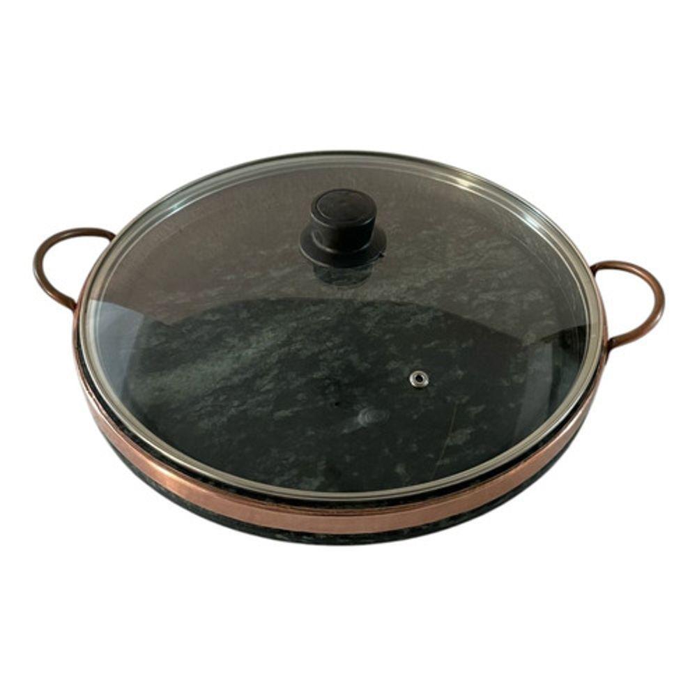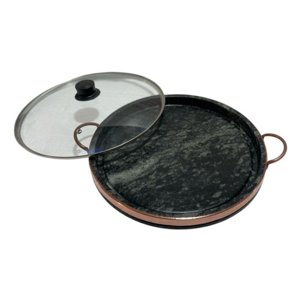 Grelha Alta Em Pedra Sabão Com Tampa De Vidro 32 Cm