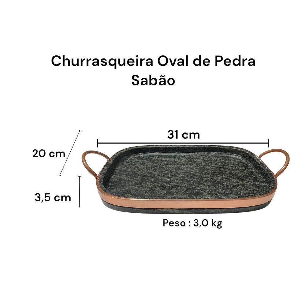 Grelha Chapa Oval Funda De Pedra Sabão Carne 31 Cm Curado********** ENVIADO CURADO **********Grelha / Chapa de Pedra SabãoIdeal para os aficionados por carnes que buscam qualidade, sabor e uma apresentação impecável.A pedra sabão, conhecida por sua capacidade de distribuir o calor de maneira uniforme, garante que seus alimentos sejam grelhados à perfeição, mantendo-os suculentos e cheios de sabor.Características Únicas da Nossa Grelha de Pedra Sabão:- Uniforme de Calor: Cozinhe seus alimentos de maneira uniforme, sem pontos superaquecidos ou partes cruas;- Retenção de Calor: Mantenha seus alimentos aquecidos por mais tempo, ideal para longas reuniões com amigos e família;- Versatilidade: Perfeita para carnes, peixes, vegetais e até mesmo frutas, permitindo uma variedade de pratos gourmet;- Fácil de Limpar: A natureza não porosa da pedra sabão facilita a limpeza, garantindo higiene e praticidade;- Durabilidade: A pedra sabão é conhecida por sua resistência e longevidade, tornando-a um investimento duradouro para sua cozinha ou área de churrasco;- Design Elegante: Além de funcional, nossa grelha/churrasqueira possui um design sofisticado que vai impressionar seus convidados.Especificações do produto:* Grelha / Churrasqueira- Altura: 3,5 cm- Comprimento: 31 cm- Largura: 20 cm- Peso: 3 kg- Material: Pedra Sabão** POR SE TRATAR DE UM PRODUTO ARTESANAL PODE HAVER PEQUENAS VARIAÇÕES DE MEDIDAS E TONALIDADE.O que você achou?Caso tenha ficado alguma dúvida pode nos contatar, teremos o maior prazer em atender.Explore as nossas outras opções de produtos, temos certeza que encontrará outros produtos de seu interesse! :)Visite nossas páginas e nos siga nas redes sociais.Equipe A PANELA DE PEDRA