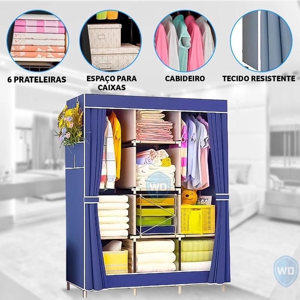 Armário Sapateira Cabideiro Arara Praia Camping Viagem Prateleiras Organizador 175cmEste guarda-roupa elegante não é apenas útil, mas também é adequado para espaços compactos.O guarda-roupa portátil tem espaço para pendurar, além de uma grande seção com prateleirasAs tampas de enrolar mantêm a poeira afastada.Ótimo para áreas onde é necessário armazenamento e organização extrasMuito espaço para seus ternos, vestidos, jaquetas e camisas.Características:Estrutura: tubos de metal + plástico (adaptadores)Material da capa: spunbond (material leve, respirável e repelente à água)Número de departamentos: 3Número de prateleiras: 8A largura do armário é de 130 cm.A profundidade do armário é de 45 cm.A altura do armário é de 175 cm.Peso do armário: 3,4 kg.Tamanho da embalagem: 60x34x9 cm.Equipamento:Cobertura de fachada em tecido;6 prateleiras de tecido;52 tubos de armação de metal;2 pacotes com conectores de plástico;2 ganchos de metal + tubo de pendurar;Embalagem cartonadaArmário De Armazenamento De Pano TriploA combinação ideal de preço e qualidade; Fácil de montar, instalar e transportar;Número suficiente de prateleiras para guardar roupas e coisas diversas;Carcaça metálica;Material de qualidade - leve, respirável e repelente à água;Fácil de usar;Cor: marrom, bege, manchado, azul, rosa, azul claro, vermelho escuro, cinza, roxo(enviao conforme estoque, não sendo possível escolher)Este guarda-roupa elegante não é apenas útil, mas também é adequado para espaços compactos.O guarda-roupa portátil tem espaço para pendurar, além de uma grande seção com prateleirasAs tampas de enrolar mantêm a poeira afastada.Ótimo para áreas onde é necessário armazenamento e organização extrasMuito espaço para seus ternos, vestidos, jaquetas e camisas.Características:Estrutura: tubos de metal + plástico (adaptadores)Material da capa: spunbond (material leve, respirável e repelente à água)Número de departamentos: 3Número de prateleiras: 8A largura do armário é de 130 cm.A profundidade do armário é de 45 cm.A altura do armário é de 175 cm.Peso do armário: 3,4 kg.Tamanho da embalagem: 60x34x9 cm.Equipamento:Cobertura de fachada em tecido;6 prateleiras de tecido;52 tubos de armação de metal;2 pacotes com conectores de plástico;2 ganchos de metal + tubo de pendurar;Embalagem cartonadaArmário De Armazenamento De Pano TriploA combinação ideal de preço e qualidade; Fácil de montar, instalar e transportar;Número suficiente de prateleiras para guardar roupas e coisas diversas;Carcaça metálica;Material de qualidade - leve, respirável e repelente à água;Fácil de usar;Cor: marrom, bege, manchado, azul, rosa, azul claro, vermelho escuro, cinza, roxo(enviao conforme estoque, não sendo possível escolher)