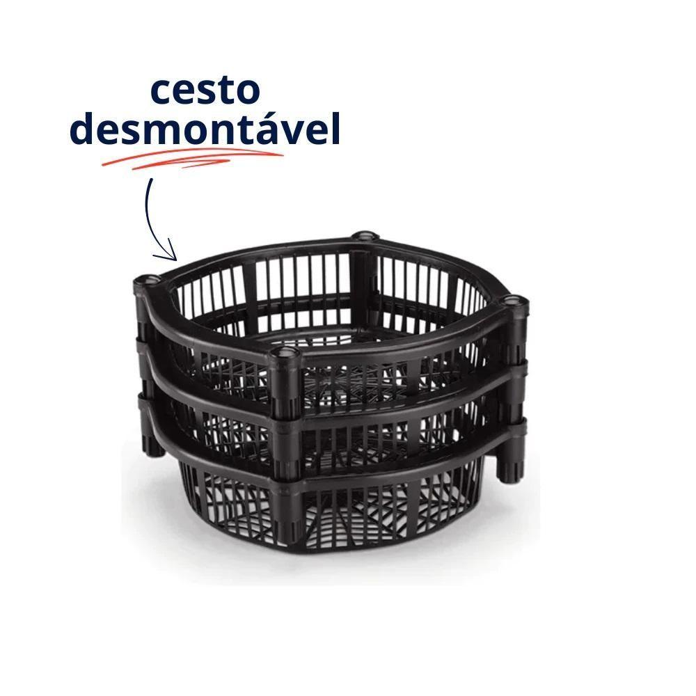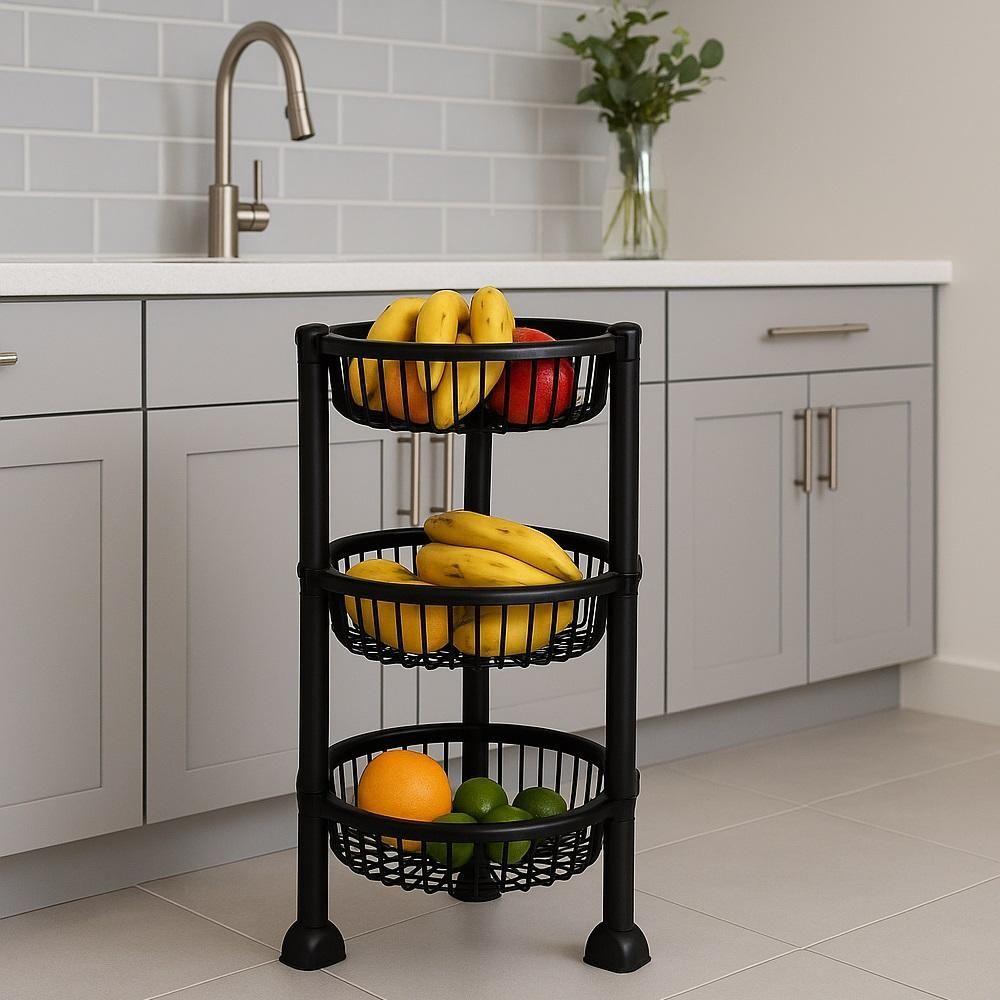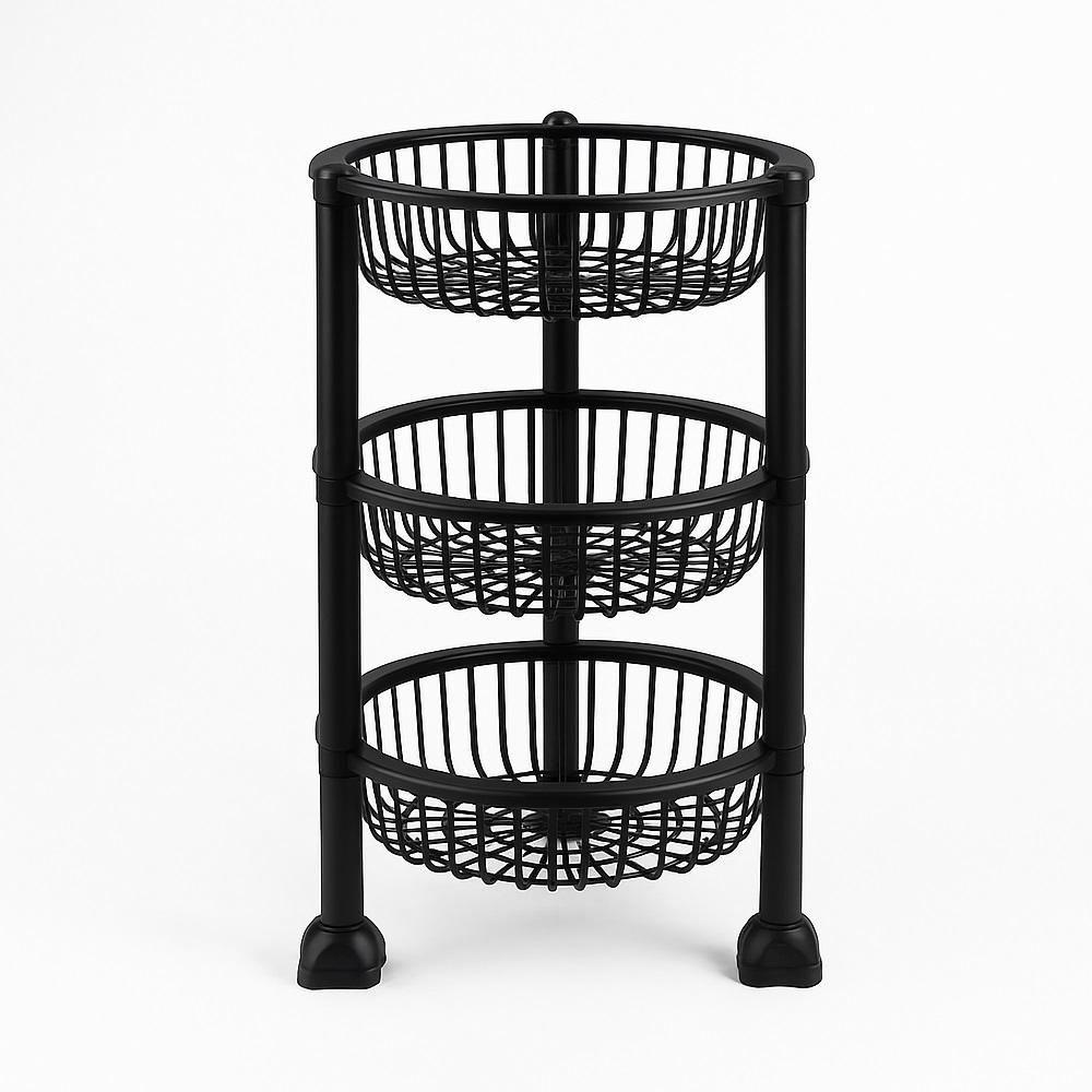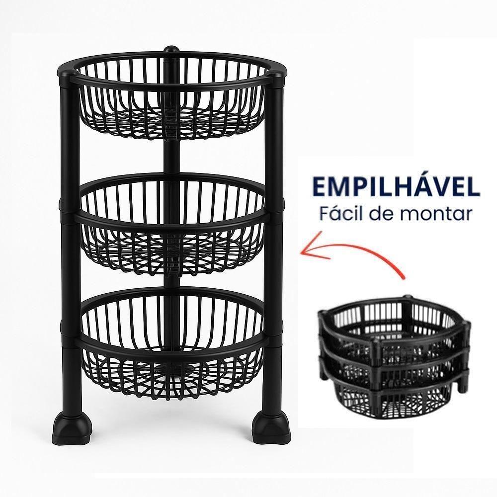Organizador Chao 3 Prateleiras Fruteira Andares Estante Multiuso Cesto Desmontavel Redonda Cozinha Banheiro Preta