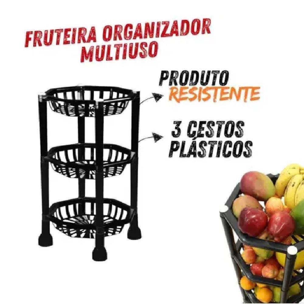 Organizador Chao 3 Prateleiras Fruteira Andares Estante Multiuso Cesto Desmontavel Redonda Cozinha Banheiro PretaFruteira Plástica Redonda de Chão 3 Andares – Organização e Estilo para Sua CozinhaTransforme a organização da sua cozinha com a Fruteira Plástica Redonda de Chão 3 Andares, um item que une beleza, praticidade e funcionalidade em um só produto.Com design moderno e estrutura firme, ela é perfeita para armazenar frutas, verduras, legumes, produtos de limpeza ou itens diversos, mantendo tudo sempre à mão e de forma organizada.Seu formato redondo e vertical aproveita o espaço de maneira inteligente, tornando-se ideal para cozinhas compactas, áreas de serviço e despensas.Feita em plástico resistente e leve, é fácil de limpar, durável e pode ser transportada com facilidade.Com três divisões espaçosas, a fruteira oferece amplo espaço interno para acomodar alimentos e objetos de maneira prática, garantindo mais higiene e um visual agradável ao ambiente.Benefícios do Produto3 andares amplos: organize frutas, verduras e diversos itens de forma eficiente.Design moderno: adiciona estilo e funcionalidade à sua cozinha.Material resistente: fabricada em plástico de alta qualidade e durabilidade.Leve e fácil de limpar: ideal para uso diário e manutenção simples.Versátil: pode ser usada na cozinha, lavanderia, banheiro ou área gourmet.Aproveitamento vertical: perfeita para quem quer economizar espaço sem abrir mão da organização.Especificações TécnicasModelo: Fruteira Plástica Redonda de ChãoMaterial: Plástico resistenteDimensões: 59 cm (Altura) × 34,5 cm (Largura) × 34,5 cm (Profundidade)Número de andares: 3 divisõesConteúdo da Embalagem1 Fruteira Plástica Redonda de Chão 3 Andares Mais organização e charme para o seu lar!Fruteira Plástica Redonda de Chão 3 Andares – Organização e Estilo para Sua Cozinha Transforme a organização da sua cozinha com a Fruteira Plástica Redonda de Chão 3 Andares, um item que une beleza, praticidade e funcionalidade em um só produto. Com design moderno e estrutura firme, ela é perfeita para armazenar frutas, verduras, legumes, produtos de limpeza ou itens diversos, mantendo tudo sempre à mão e de forma organizada. Seu formato redondo e vertical aproveita o espaço de maneira inteligente, tornando-se ideal para cozinhas compactas, áreas de serviço e despensas. Feita em plástico resistente e leve, é fácil de limpar, durável e pode ser transportada com facilidade. Com três divisões espaçosas, a fruteira oferece amplo espaço interno para acomodar alimentos e objetos de maneira prática, garantindo mais higiene e um visual agradável ao ambiente. Benefícios do Produto 3 andares amplos: organize frutas, verduras e diversos itens de forma eficiente. Design moderno: adiciona estilo e funcionalidade à sua cozinha. Material resistente: fabricada em plástico de alta qualidade e durabilidade. Leve e fácil de limpar: ideal para uso diário e manutenção simples. Versátil: pode ser usada na cozinha, lavanderia, banheiro ou área gourmet. Aproveitamento vertical: perfeita para quem quer economizar espaço sem abrir mão da organização. Especificações Técnicas Modelo: Fruteira Plástica Redonda de Chão Material: Plástico resistente Dimensões: 59 cm (Altura) × 34,5 cm (Largura) × 34,5 cm (Profundidade) Número de andares: 3 divisões Conteúdo da Embalagem 1 Fruteira Plástica Redonda de Chão 3 Andares Mais organização e charme para o seu lar!