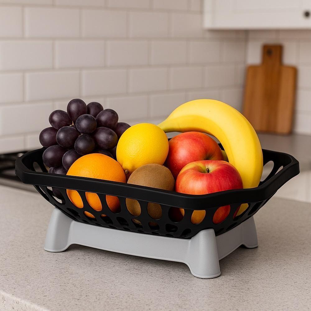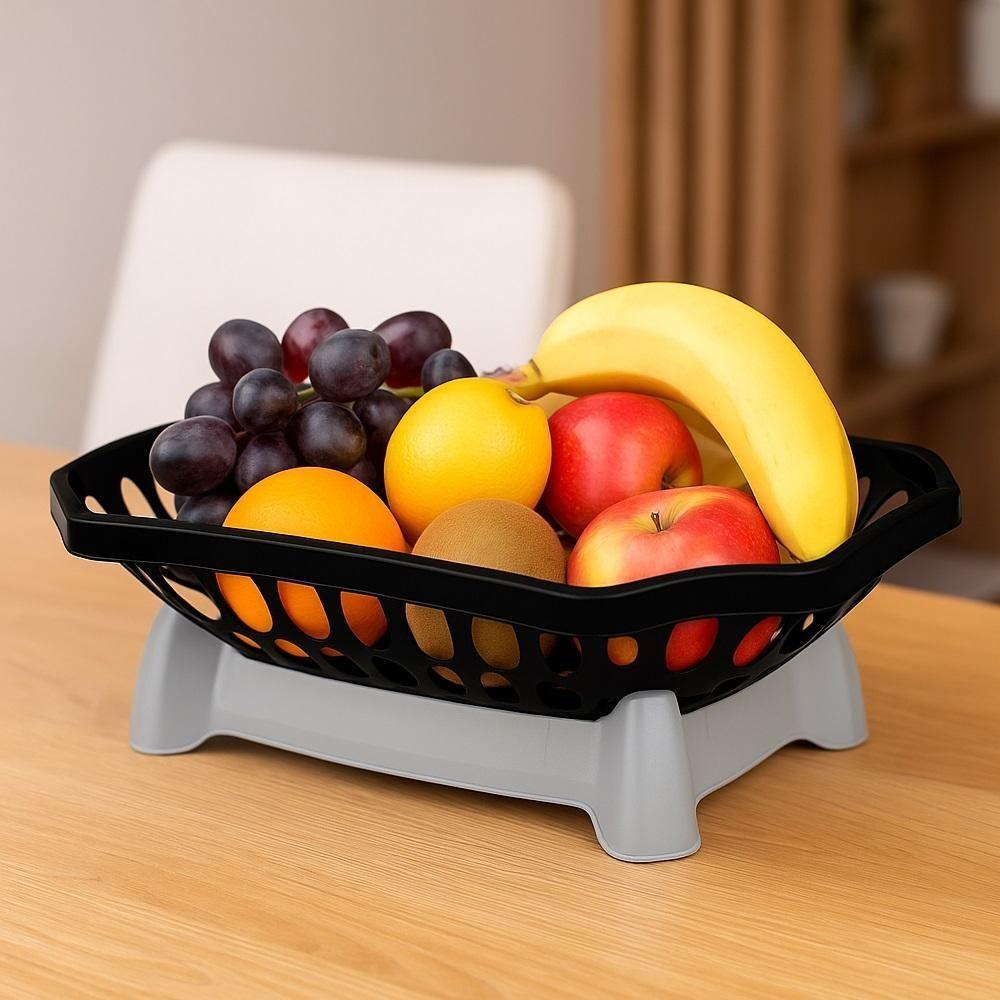 Fruteira De Mesa Cesto Organizador Firenza Frutas Decorativo Bancada Cozinha Sala Multiuso Plastica Preta
