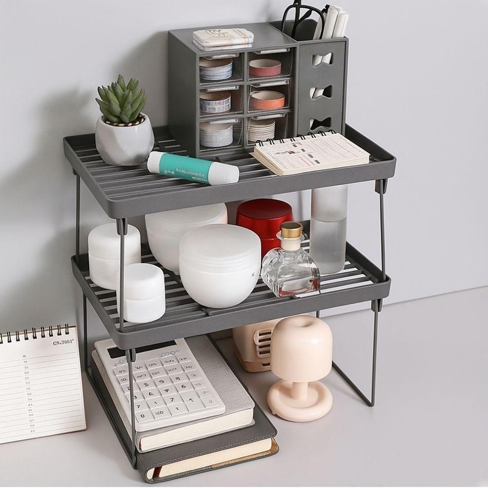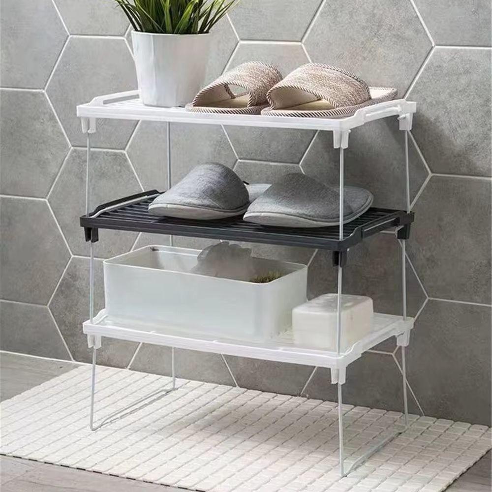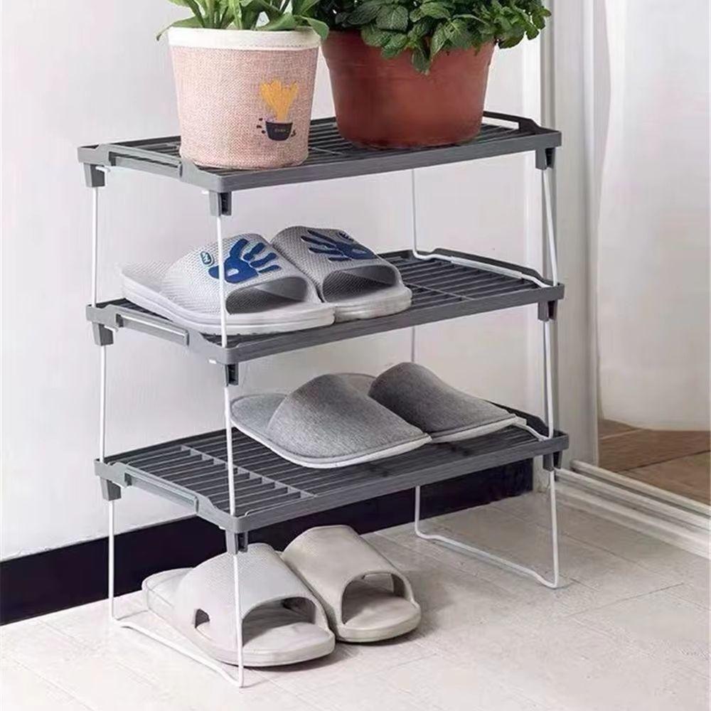 Estante Empilhavel Dobravel Sapateira Multifuncional Porta Objetos Ajustavel Cozinha Pia Banheiro Armario Cinza