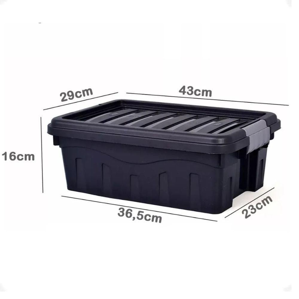 Caixa Organizadora Empilhavel Multiuso 11 Litros Trava Organizador Reforcado Brinquedos Roupas Lavanderia ContainerCAIXA ORGANIZADORA MULTIUSO 11 LITROS PRETA COM TAMPA E TRAVA LATERAL – PRATICIDADE E ORGANIZAÇÃO PARA O SEU DIA A DIAA Caixa Organizadora Multiuso 11L Preta com Trava Lateral é ideal para quem busca organizar com estilo e eficiência diferentes ambientes da casa ou do trabalho.Com design moderno, tampa com travas laterais seguras e capacidade de 11 litros, é perfeita para armazenar documentos, brinquedos, roupas, utensílios domésticos, alimentos e produtos de limpeza.Fabricada em plástico resistente e durável, garante proteção e conservação dos itens armazenados, evitando poeira e umidade.Compacta e leve, pode ser facilmente transportada e empilhada, otimizando espaços em closets, lavanderias, cozinhas, banheiros ou escritórios.Além de funcional, sua cor preta neutra combina com qualquer decoração, proporcionando um toque elegante e organizado ao ambiente.FICHA TÉCNICA- Capacidade: 11 Litros- Cor: Preto- Material: Plástico resistente e de alta durabilidade- Tipo de Fechamento: Tampa com travas laterais- Quantidade por Embalagem: 1 unidadeDimensões Aproximadas:Altura: 16 cmComprimento: 43 cmLargura: 29 cmDESTAQUES:- Ideal para organização de documentos, roupas, brinquedos, utensílios e alimentos- Tampa com travas laterais que garantem segurança e vedação- Design moderno e empilhável- Material leve, resistente e fácil de limpar- Versátil – uso em casa, escritório, lavanderia ou cozinhaCAIXA ORGANIZADORA MULTIUSO 11 LITROS PRETA COM TAMPA E TRAVA LATERAL – PRATICIDADE E ORGANIZAÇÃO PARA O SEU DIA A DIAA Caixa Organizadora Multiuso 11L Preta com Trava Lateral é ideal para quem busca organizar com estilo e eficiência diferentes ambientes da casa ou do trabalho.Com design moderno, tampa com travas laterais seguras e capacidade de 11 litros, é perfeita para armazenar documentos, brinquedos, roupas, utensílios domésticos, alimentos e produtos de limpeza.Fabricada em plástico resistente e durável, garante proteção e conservação dos itens armazenados, evitando poeira e umidade.Compacta e leve, pode ser facilmente transportada e empilhada, otimizando espaços em closets, lavanderias, cozinhas, banheiros ou escritórios.Além de funcional, sua cor preta neutra combina com qualquer decoração, proporcionando um toque elegante e organizado ao ambiente.FICHA TÉCNICA- Capacidade: 11 Litros- Cor: Preto- Material: Plástico resistente e de alta durabilidade- Tipo de Fechamento: Tampa com travas laterais- Quantidade por Embalagem: 1 unidadeDimensões Aproximadas:Altura: 16 cmComprimento: 43 cmLargura: 29 cmDESTAQUES:- Ideal para organização de documentos, roupas, brinquedos, utensílios e alimentos- Tampa com travas laterais que garantem segurança e vedação- Design moderno e empilhável- Material leve, resistente e fácil de limpar- Versátil – uso em casa, escritório, lavanderia ou cozinha