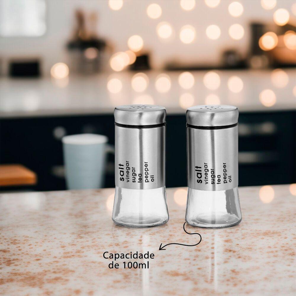 Conjunto Elegante De Saleiro E Pimenteiro Com Suporte Moderno Para Sua MesaO Conjunto de Saleiro e Pimenteiro com Suporte Elegante é a solução ideal para aqueles que buscam praticidade e sofisticação na hora de servir temperos à mesa. Com um design moderno e funcional, esse conjunto oferece uma maneira eficiente de armazenar e servir sal e pimenta, tornando o seu dia a dia mais agradável e organizado.Composto por um suporte que mantém as peças na posição correta, o conjunto garante estabilidade e charme ao ambiente. Este item não só enriquece a decoração da sua cozinha, mas também se destaca em eventos especiais e jantares mais elaborados, proporcionando um toque de elegância a cada refeição.Os potes são fabricados com vidro resistente e possuem tampa metálica durável, assegurando uma conservação eficiente dos temperos, evitando a umidade e preservando o aroma por mais tempo. Além disso, o design compacto das peças torna este conjunto perfeito para qualquer tipo de cozinha, independente do estilo ou espaço disponível.As especificações do produto incluem:Capacidade de 100ml, ideal para armazenar temperos;Medidas de cada pote: 11 x 5 x 5cm;Fácil de usar, limpar e recarregar;Multiuso, ideal para sal, pimenta e outros condimentos.O Conjunto de Saleiro e Pimenteiro não é apenas prático, mas também acrescenta um toque de classe ao seu . Seja em um almoço em família ou em uma reunião com amigos, ele proporciona uma experiência de uso que combina beleza estética e funcionalidade.Investir neste conjunto é garantir que você está adquirindo um produto de qualidade da marca TRAZPRACA, que se destaca pela durabilidade e pelo design inteligente. Transforme suas refeições em momentos especiais com este conjunto que une elegância e praticidade.
