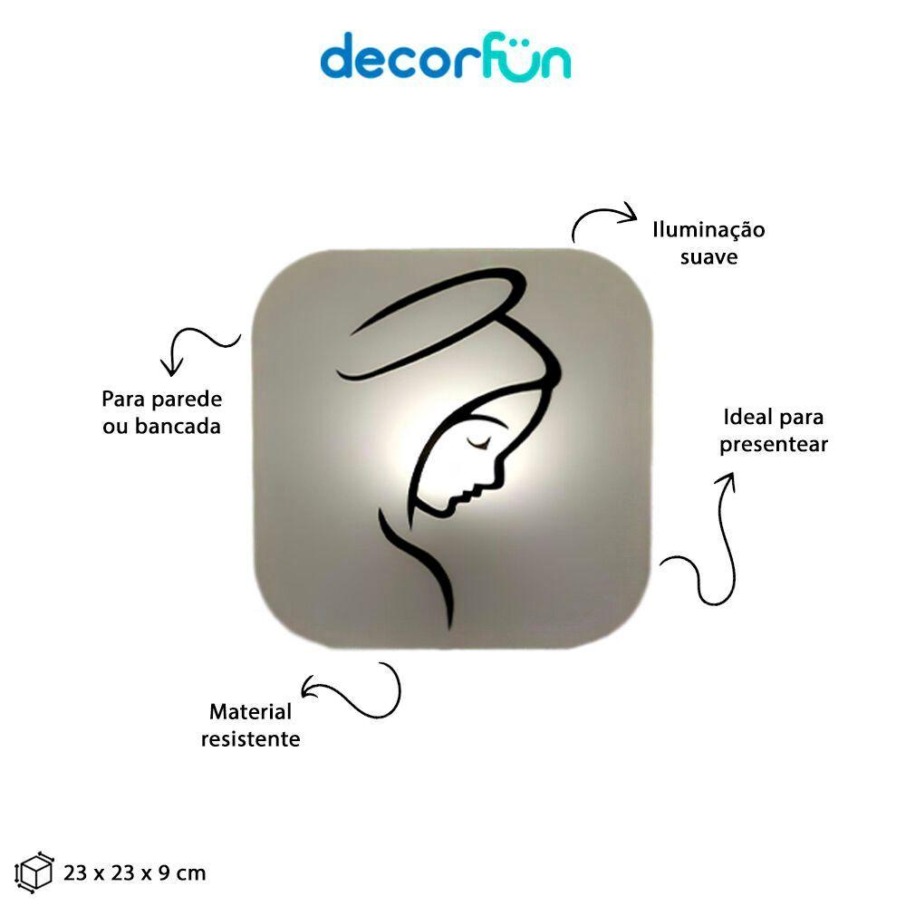 Luz Divina: Luminária Espiritual Para Um Lar Aconchegante E SereneA Luminária Luz Divina, com seu design delicado e espiritual, é muito mais do que uma simples peça decorativa; ela é um símbolo de proteção e elegância. Inspirada na imagem de Nossa Senhora, esta luminária foi cuidadosamente elaborada para aqueles que buscam uma conexão mais profunda com a espiritualidade e desejam criar um ambiente acolhedor em seus lares.Fabricada com materiais de alta qualidade, a luminária apresenta uma construção robusta, garantindo sua durabilidade. Seu acabamento refinado adiciona um toque de sofiticação a qualquer ambiente, sendo perfeita para: Salas de estar Quartos Espaços de meditaçãoCom uma iluminação suave e acolhedora, a Luz Divina cria uma atmosfera relaxante e convidativa, ideal para momentos de reflexão e oração. Ao acender a luz, você não só ilumina seu espaço, mas também invoca a presença protetora de Nossa Senhora, trazendo uma sensação de paz e para todos ao seu redor.Um dos maiores atrativos dessa luminária é sua versatilidade. Ela se adapta perfeitamente a diferentes estilos de decoração, desde os mais clássicos até os mais modernos. Seja em um altar, ao lado da cama ou em um ambiente de trabalho, a Luz Divina é uma adição que se destaca, transformando qualquer espaço em um de serenidade e proteção.O design ergonômico e a tecnologia de iluminação eficiente garantem que a luminária não apenas embeleze o ambiente, mas também seja funcional. Com baixo consumo de energia e facilidade na substituição das lâmpadas, a Luz Divina representa uma escolha consciente que alia sustentabilidade e beleza, demonstrando um compromisso com a responsabilidade ambiental.Além de ser um excelente complemento para qualquer lar, a Luminária Nossa Senhora é um presente significativo e hedônico. Ideal para celebrações religiosas, casamentos ou como uma demonstração de carinho em datas especiais, ao presenteá-la, você oferece não apenas uma peça decorativa, mas um símbolo de amor e proteção que será valorizado ao longo dos anos.Em resumo, a Luz Divina: Luminária Nossa Senhora é a combinação perfeita de elegância, funcionalidade e espiritualidade. É uma peça que não apenas ilumina, mas também enriquece o espaço em que se encontra, tornando-se uma fiel companheira nas jornadas espirituais e um adorno que reflete a sua fé. Transforme sua casa e crie um lar de proteção e beleza com esta luminária única.