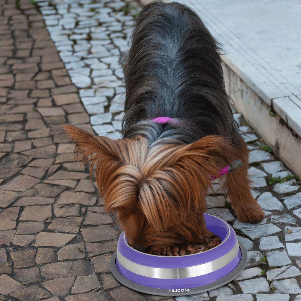 Comedouro Inox Roxo Estiloso E Antiderrapante - Conforto E Segurança Para Seu Pet